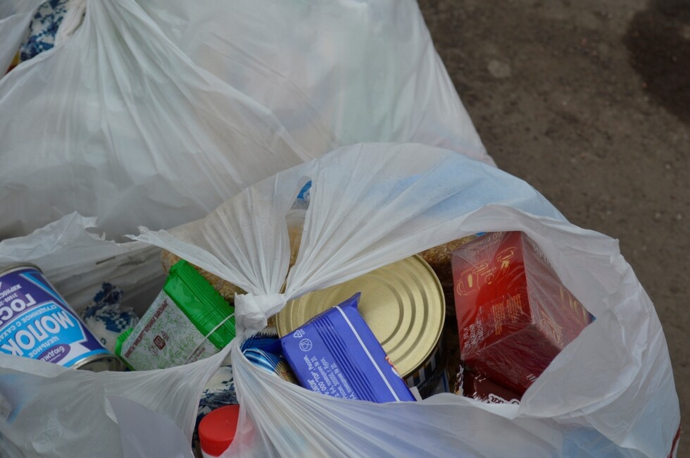 По ее словам, каждый проднабор весит около 10 килограммов, в состав вошли: крупы, сахар, соль консервы и кондитерские изделия.