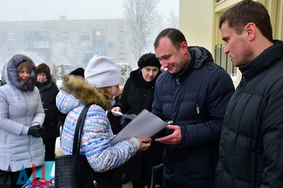 Дебальцево, 28 дек – корр. ДАН. Тридцать две семьи из Дебальцево, лишившиеся жилья во время боев за город, сегодня получили ключи от новых квартир. По этому случаю Дебальцево посетил министр строительства и ЖКХ ДНР Сергей Наумец.