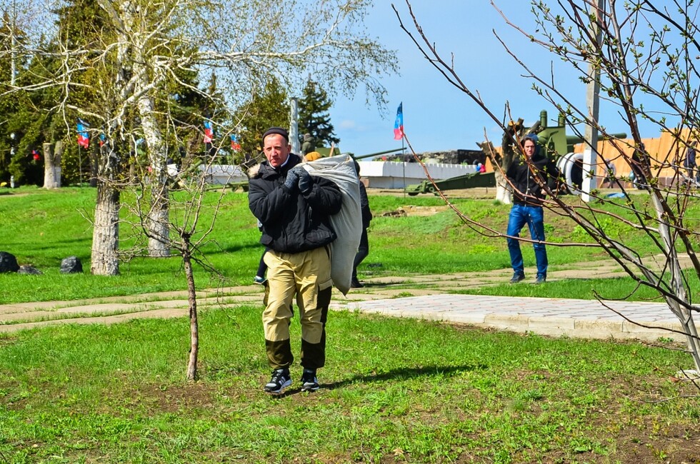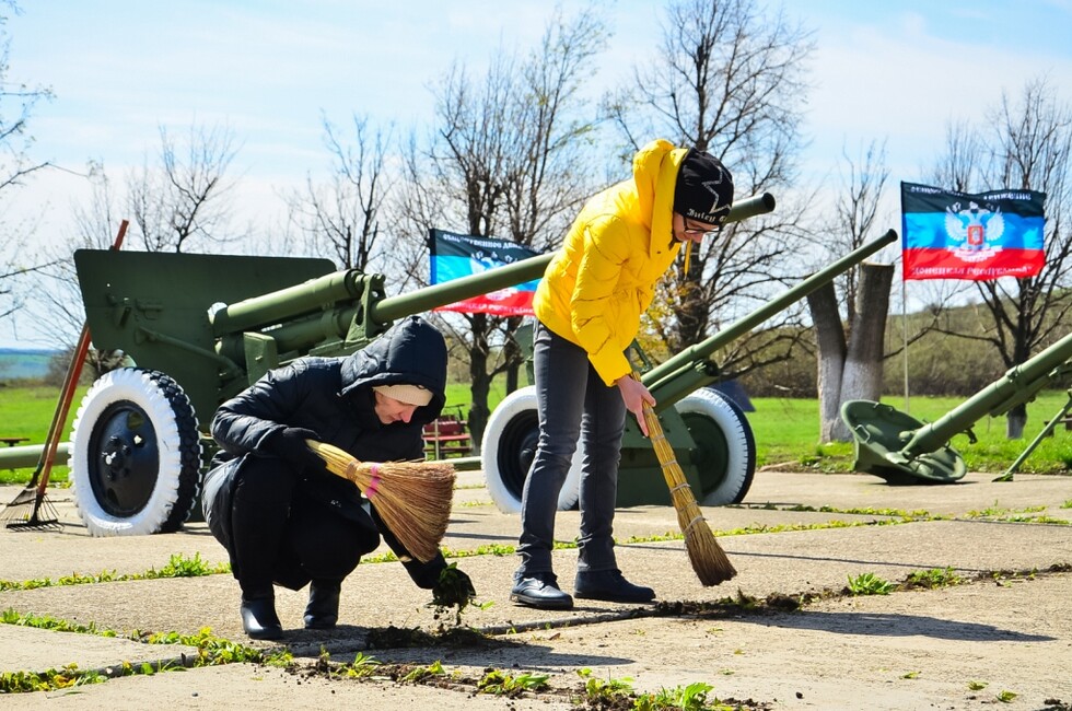 Ранее активисты общественного движения "Донецкая Республика", представители Народной дружины и общественной организации "Молодая Республика" из Шахтерска, Тореза, Снежного и Амвросиевки приняли участие в субботнике в мемориальном комплексе "Саур-Могила". Всего было задействовано порядка 500 человек. Работы по благоустройству проводились в преддверии торжественных мероприятий, приуроченных ко Дню Победы. *оя*сж