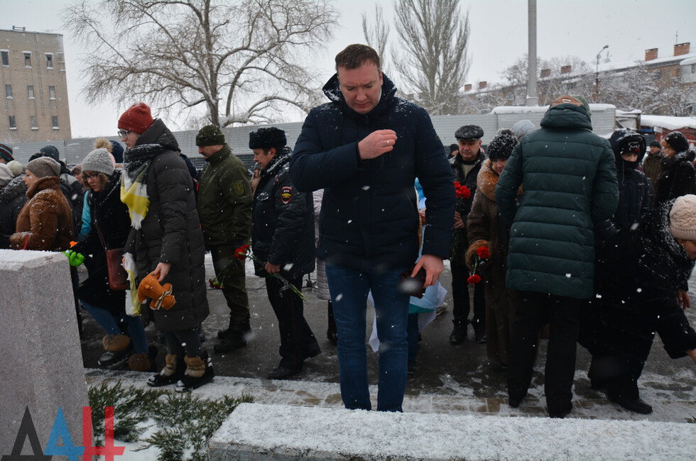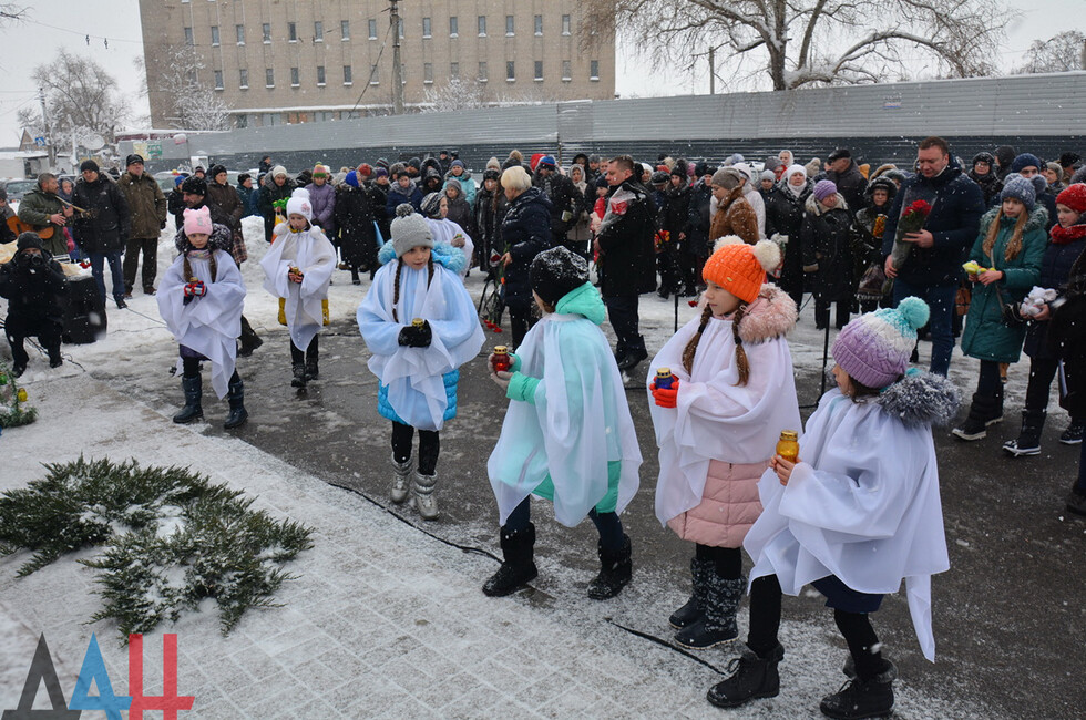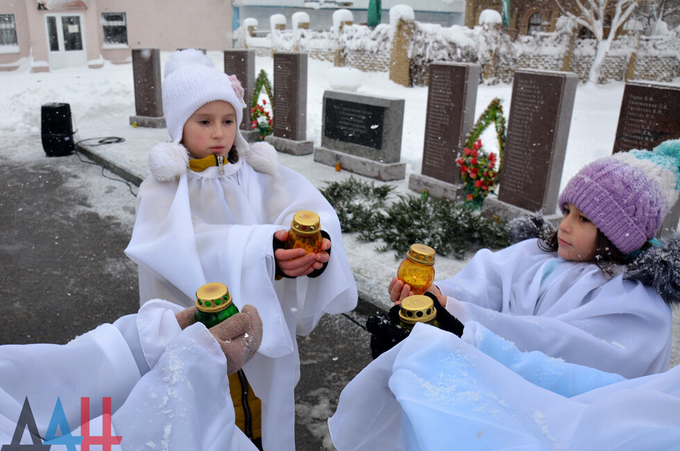 Донецк, 5 янв – корр. ДАН. Митинг-реквием «Ангелы Рождества» памяти погибших в результате военной агрессии Украины детей прошел сегодня в поселке Октябрьский в северной части Донецка. Жители собрались у мемориала погибшим жителям Куйбышевского района и поселка Веселый.