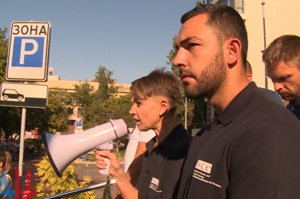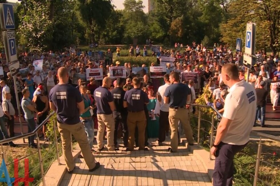 Кроме того, многие демонстранты заявили, что руководителю миссии ОБСЕ следовало бы находиться в Донецке, а не в Киеве.