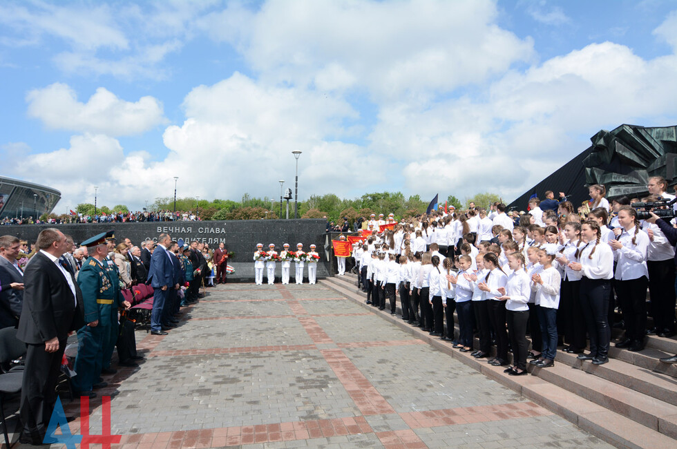 Донецк, 9 мая – корр. ДАН. Торжественный митинг по случаю 74-й годовщины Великой Победы состоялся сегодня в Донецке у монумента «Твоим освободителям, Донбасс». Почтить память героев-фронтовиков в парке имени Ленинского Комсомола собрались десятки тысяч граждан.