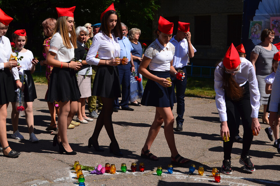 На мероприятии собрались сотни людей. В их числе депутаты Народного Совета Светлана Куманова и Владимир Савелов, заместитель главы администрации Донецка Геннадий Мишко, местные власти, педагоги, школьники. Во дворе учебного заведения был установлен импровизированный мемориал с детскими рисунками, призывающими остановить войну.