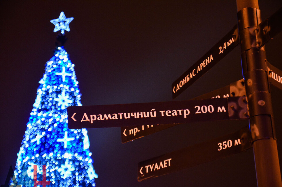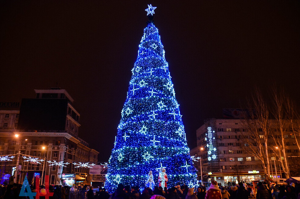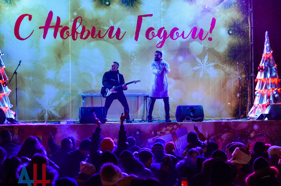 Мероприятие началось с выступлений на сцене у главной новогодней елки страны артистов макеевского ансамбля «Ре-Ми» и донецкой молодежной группы «NINJA».