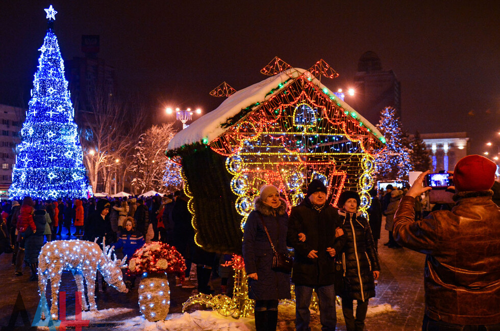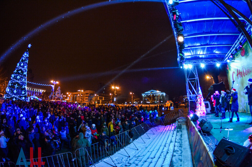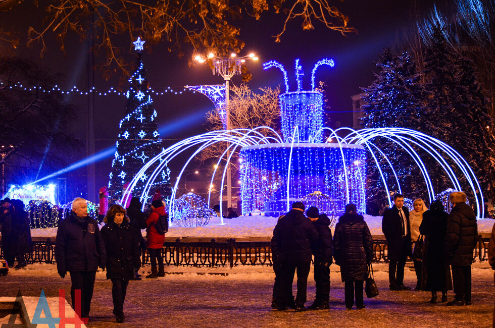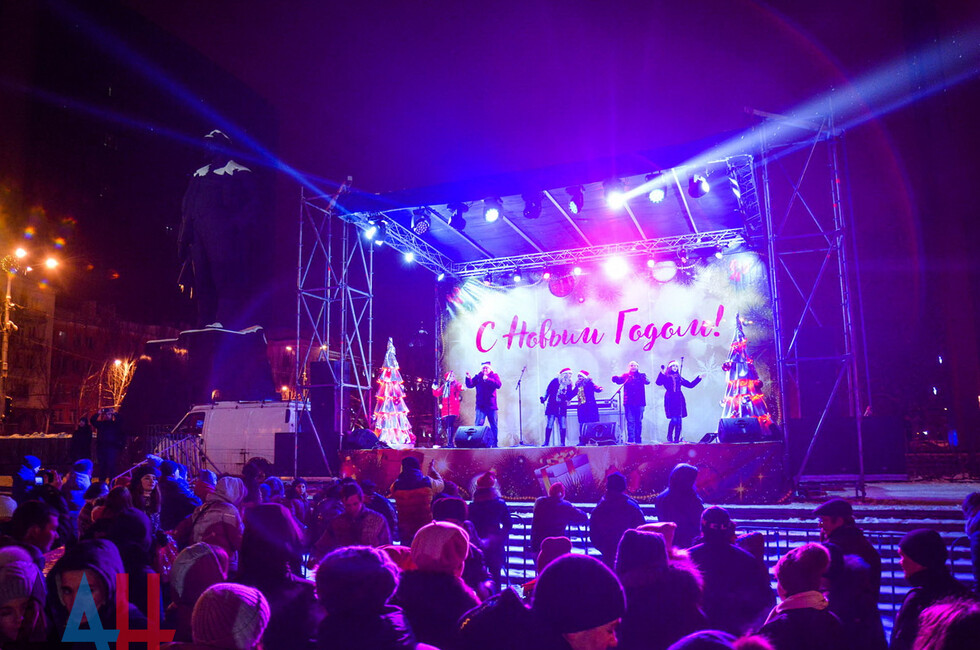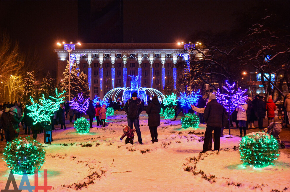 Донецк, 31 дек – корр. ДАН. Центр столицы ДНР - площадь Ленина - сегодня вечером заполнили жители и гости Донецка, которые собрались посмотреть на специальную шоу-программу, посвященную встрече Нового года. По наблюдениям корр. ДАН, многие предпочли прийти вместе с друзьями и родственниками.