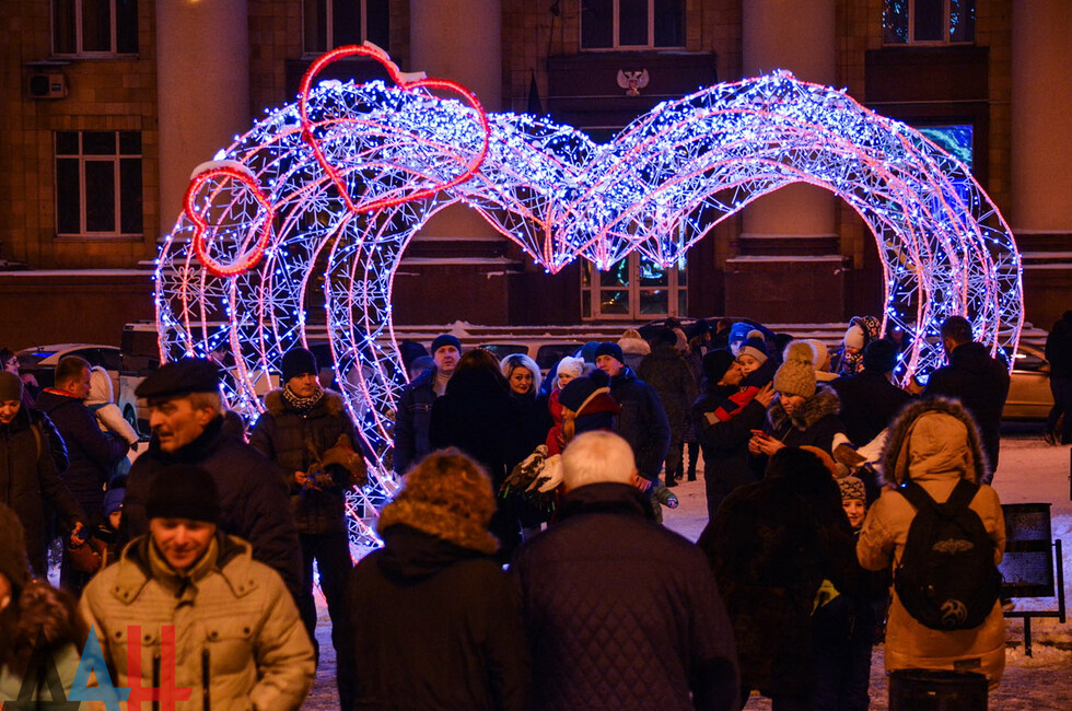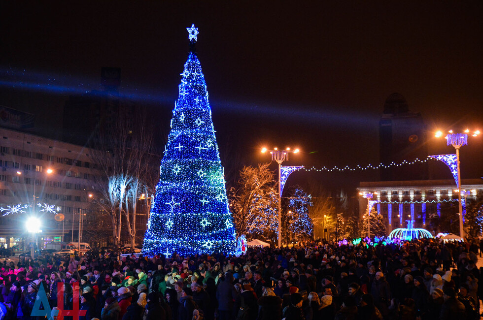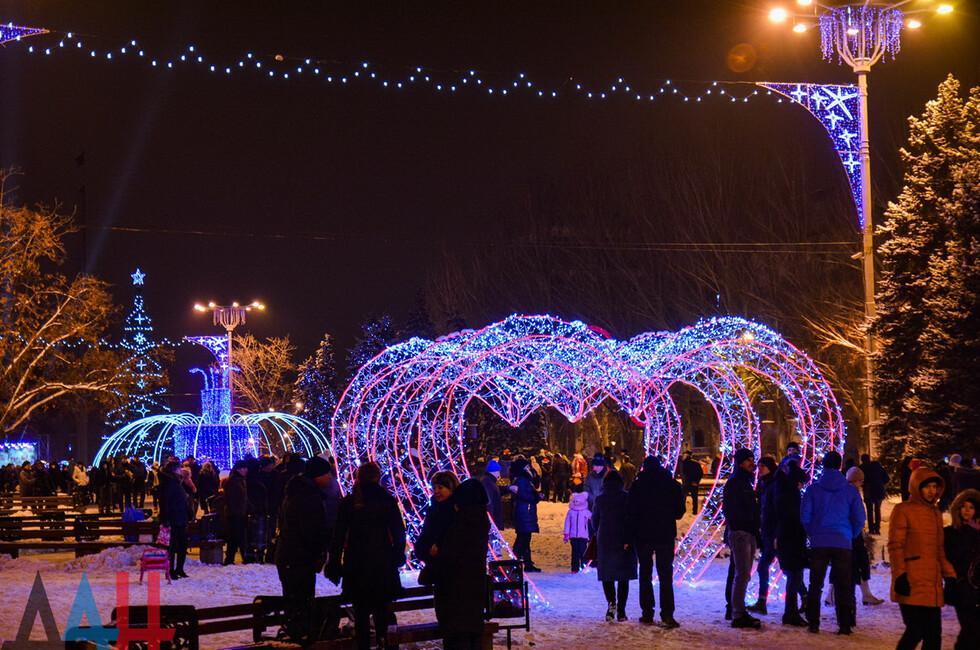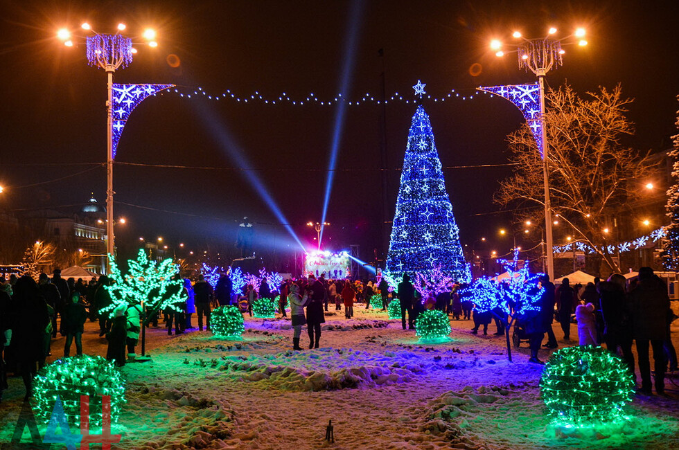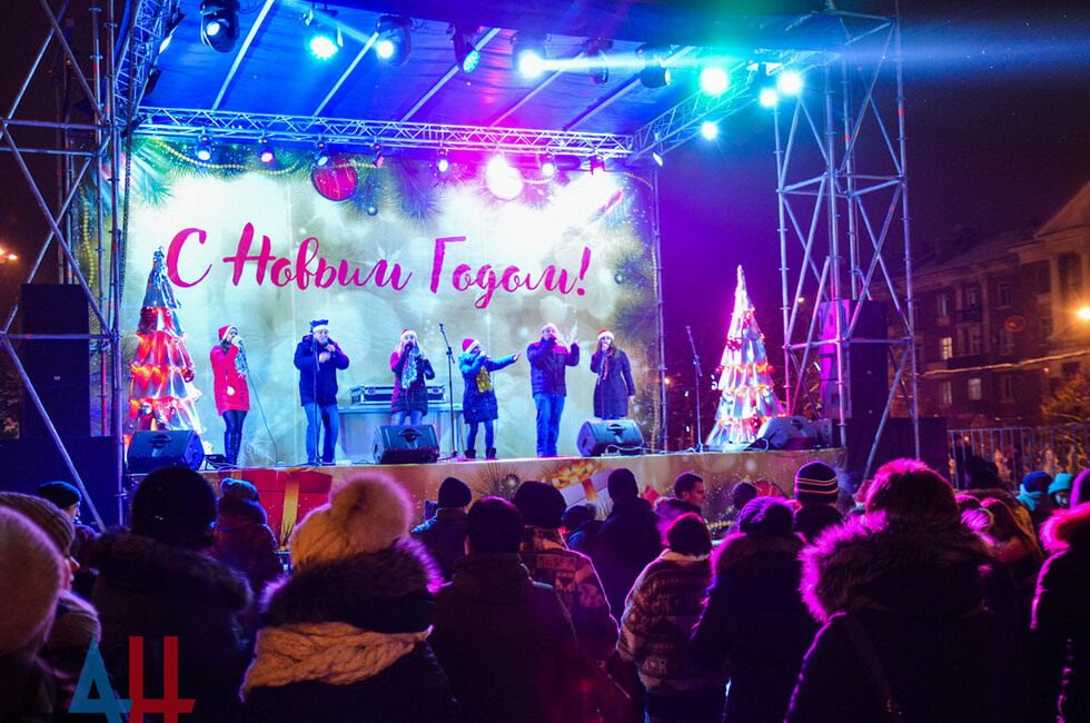 Донецк, 31 дек – корр. ДАН. Центр столицы ДНР - площадь Ленина - сегодня вечером заполнили жители и гости Донецка, которые собрались посмотреть на специальную шоу-программу, посвященную встрече Нового года. По наблюдениям корр. ДАН, многие предпочли прийти вместе с друзьями и родственниками.