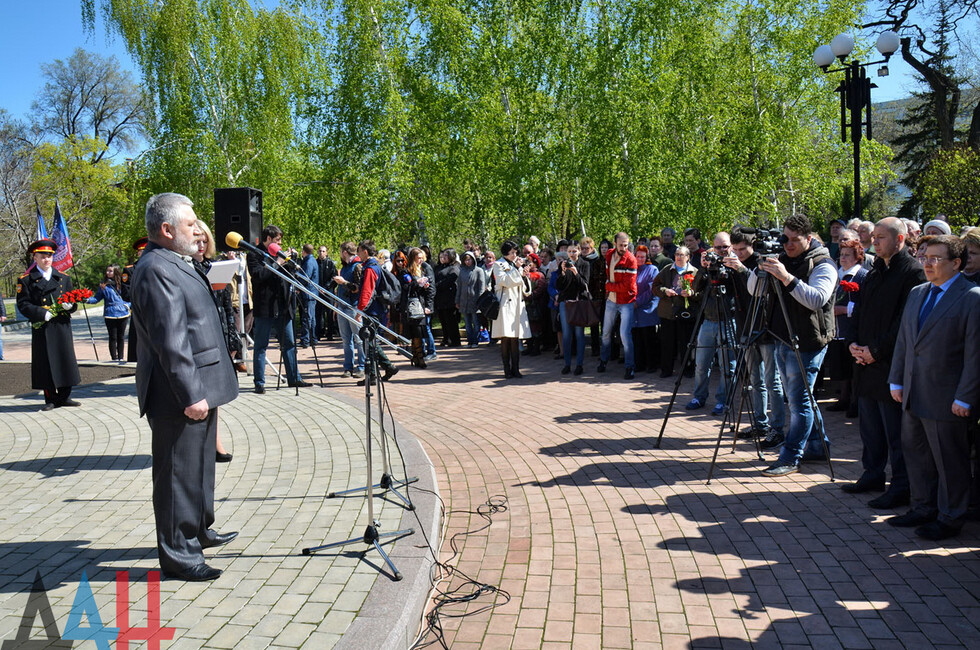 Донецк, 26 апр – корр. ДАН. Память ликвидаторов последствий аварии на Чернобыльской атомной электростанции почтили сегодня в столице ДНР. К мемориалу жертвам трагедии на площади Павших Коммунаров пришли более сотни жителей города и гостей столицы.