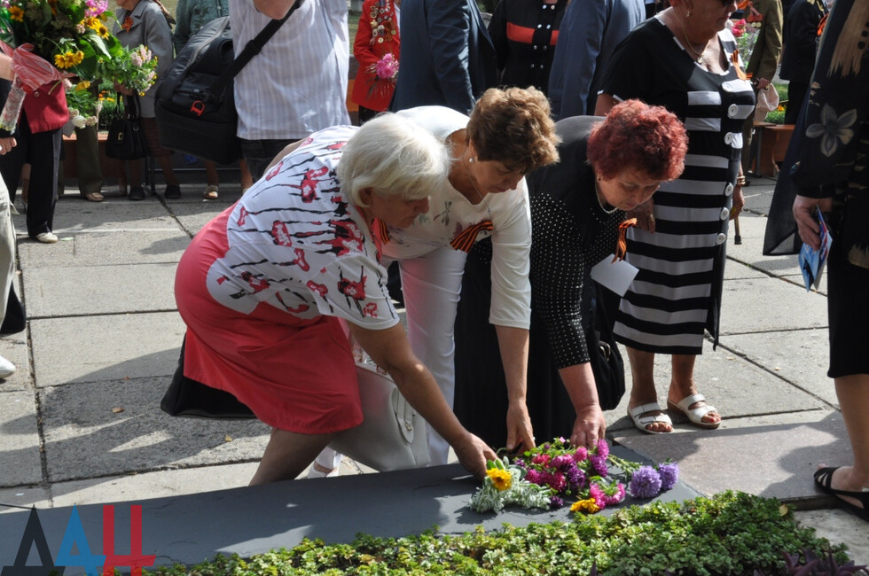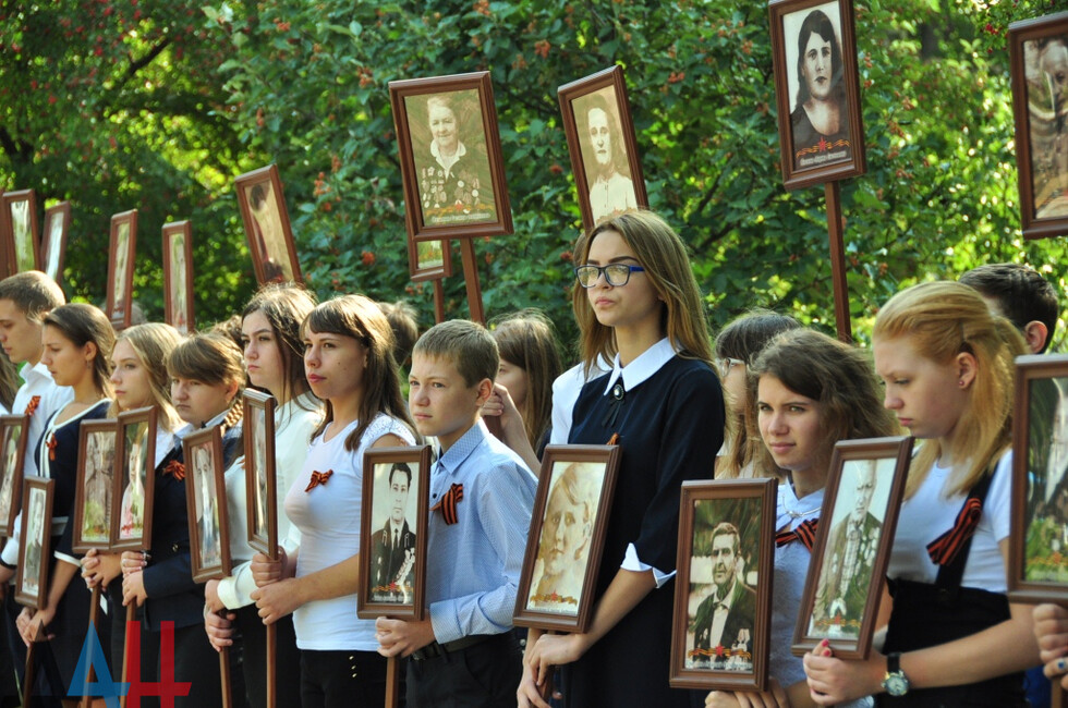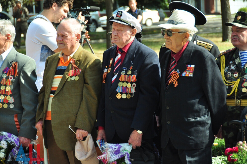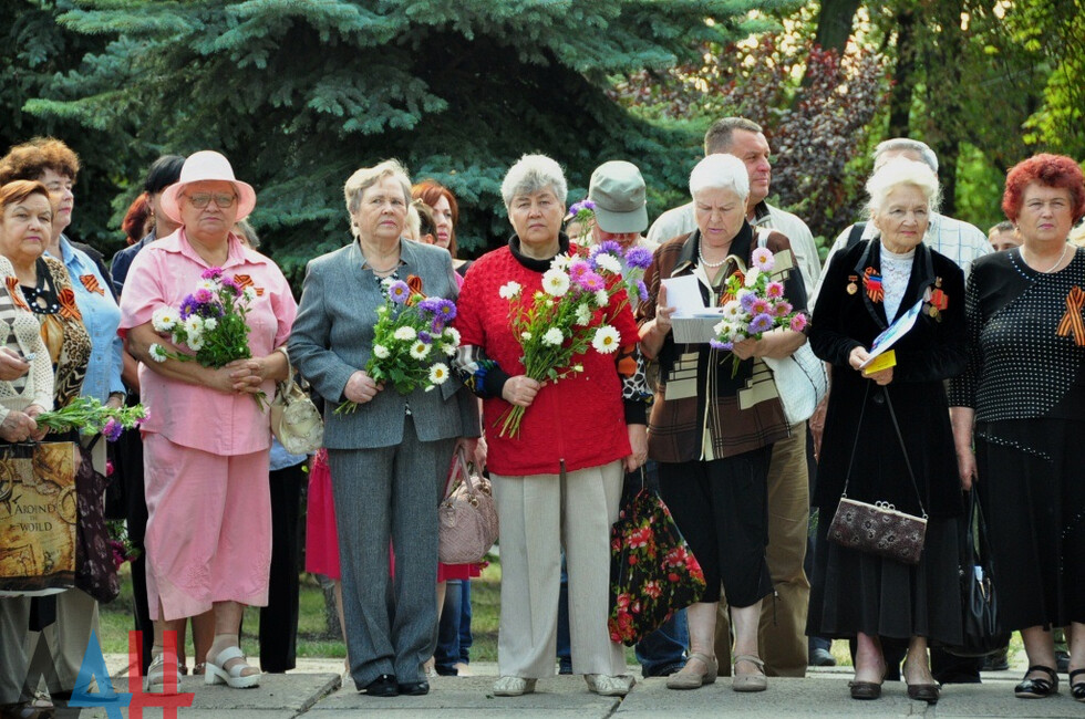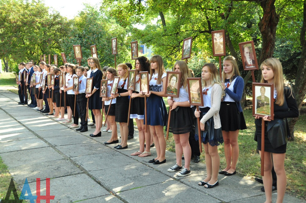Почтить подвиг защитников Донбасса пришли глава местной администрации Юрий Будрин, депутаты Народного Совета, ветераны ВОВ, активисты общественного движения «Донецкая Республика», школьники держали в руках портреты освободителей.