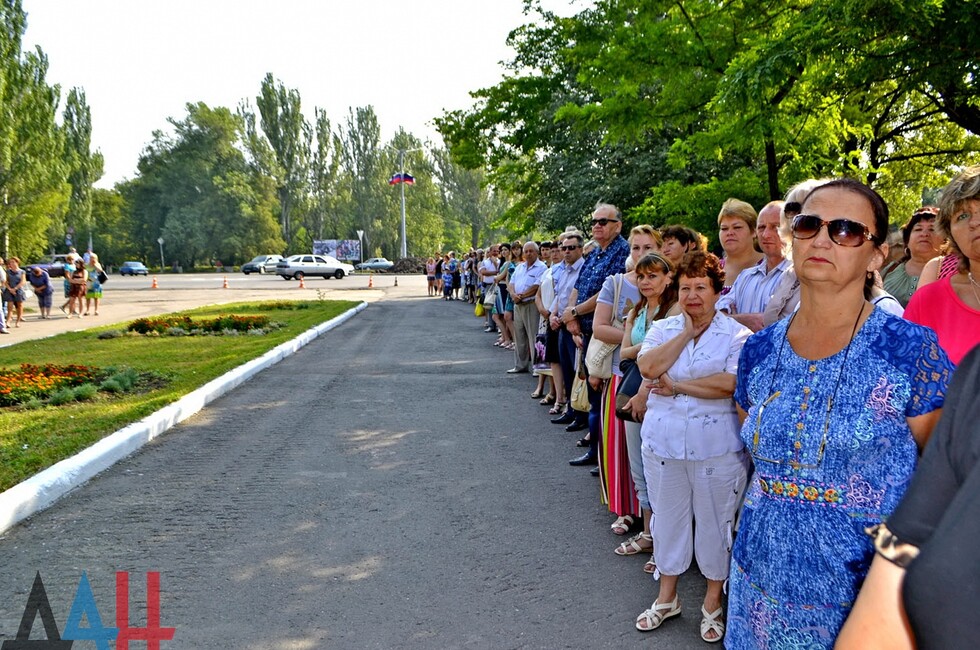 Донецк, 27 июл – ДАН. Сотни жителей Шахтерска и окрестных поселков почтили память погибших мирных жителей и ополченцев во вторую годовщину начала боев на территории города и района. Об этом сообщили в пресс-службе местной администрации.