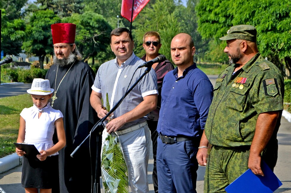 В митинге приняли участие мэр города Алексей Швыдкий, представители общественного движения «Донецкая Республика» и его молодежного крыла, родственники погибших, военные.