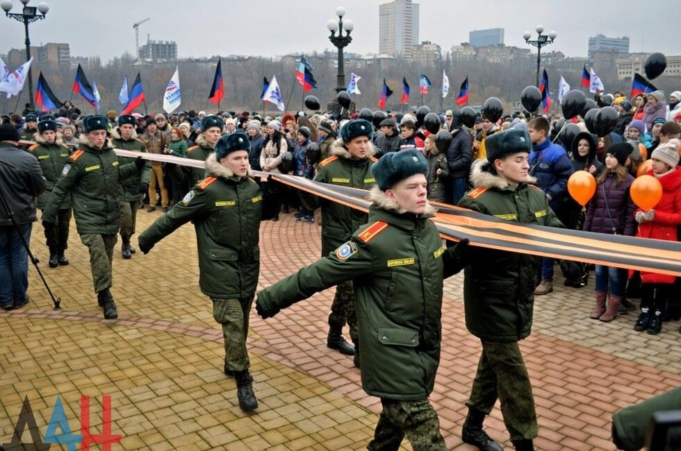 Донецк, 6 дек – корр. ДАН. Жители российского города Смоленск подарили Донецкой Народной Республике георгиевскую ленту длиной 400 метров, которая была создана к годовщине Великой Победы. Об этом журналистом сообщили организаторы митинга в честь Дня георгиевской ленты, который сегодня отмечают в ДНР.