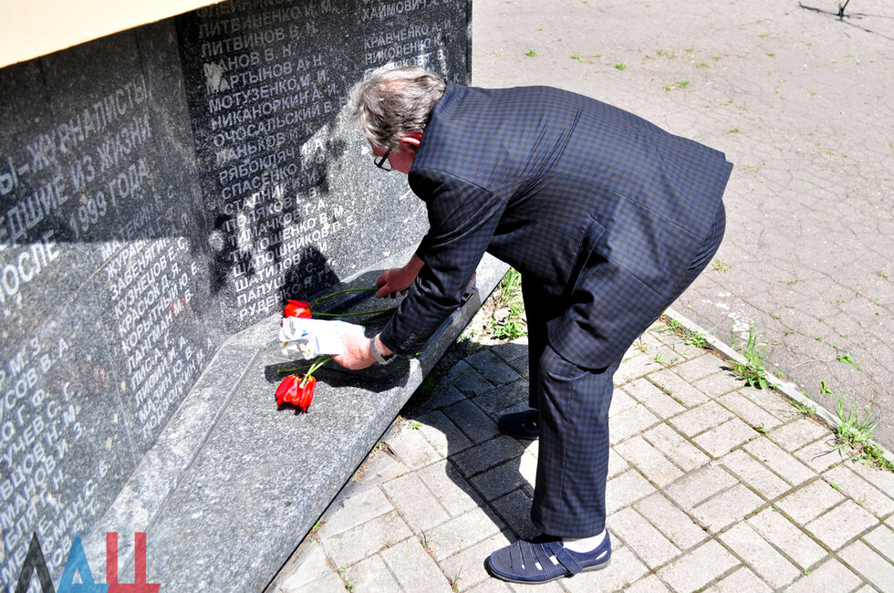 Донецк, 4 мая – корр. ДАН. Журналисты ДНР собрались сегодня у монумента «Не вернувшимся в редакции», чтобы почтить память погибших при исполнении профессионального долга коллег в годы ВОВ и войны в Донбассе. Мероприятие прошло в прифронтовом Киевском районе Донецка, где установлен мемориал.