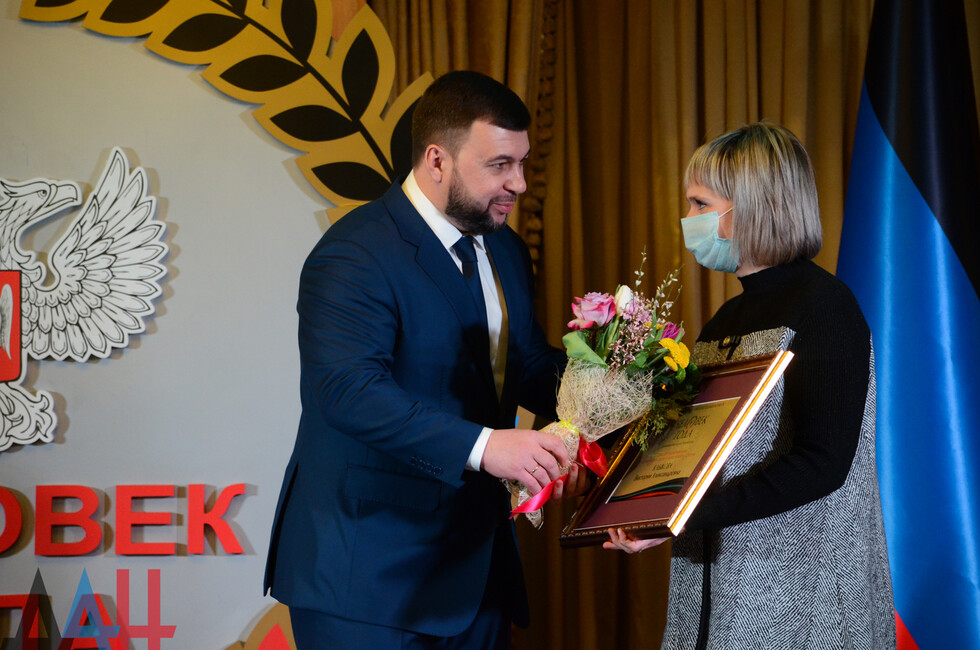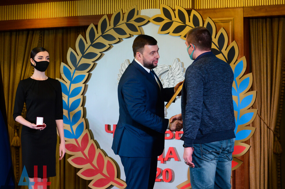 Донецк, 12 фев – корр. ДАН. Глава ДНР Денис Пушилин наградил победителей республиканского ежегодного конкурса «Человек года». Торжественная церемония прошла сегодня в донецкой гостинице «Донбасс Палас».