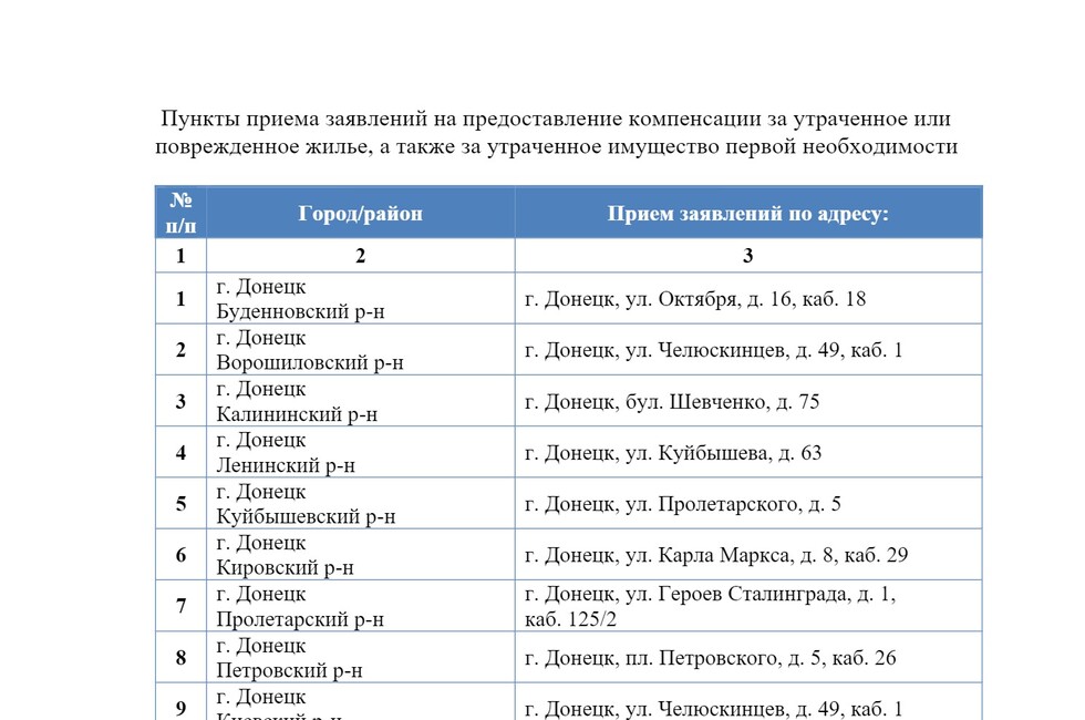 В Республике открыт 51 пункт по приему заявлений от пострадавших в результате боевых действий и работает 38 комиссий, которые рассматривают документы и принимают решения о компенсациях.