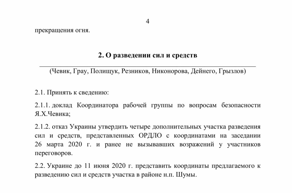 Протокол переговоров Контактной группы от 10 и 15 июня