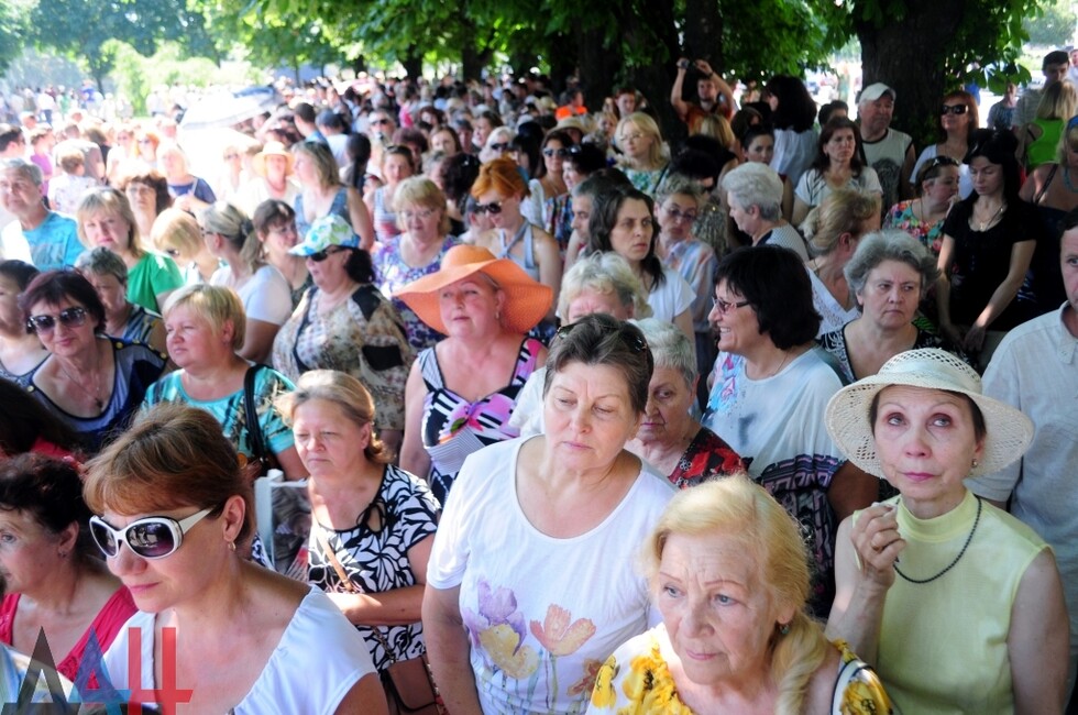 Донецк, 14 июл – ДАН. Более тысячи жителей Донецка вышли сегодня на митинг в центре столицы ДНР, чтобы выразить протест против невыполнения Украиной Минских соглашений, передает корр. ДАН с места событий. Поддержать акцию протеста пришли Глава Республики Александр Захарченко и председатель Народного Совета Денис Пушилин.