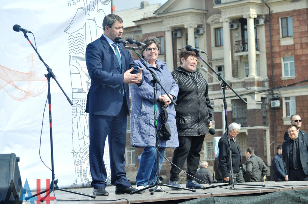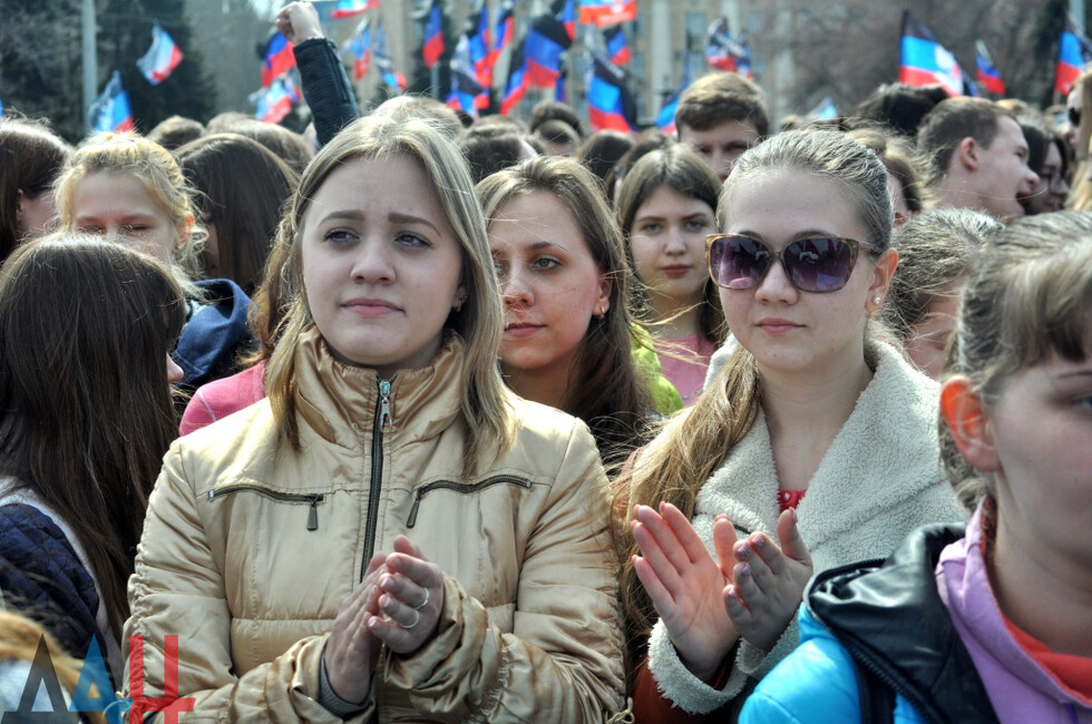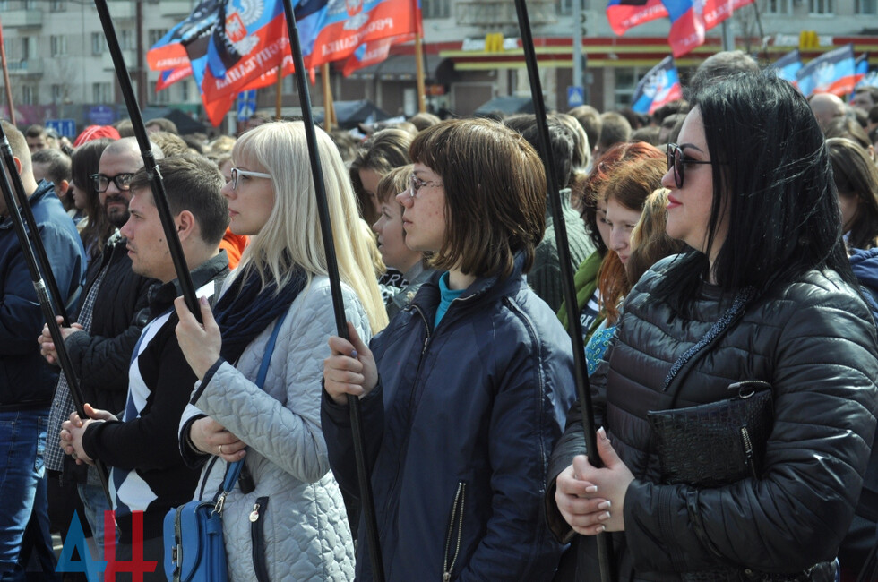 Донецк, 7 апр – корр. ДАН. Митинг, посвященный Дню провозглашения ДНР, прошел сегодня на центральной площади столицы Республики. Праздничное мероприятие собрало более 10 тысяч человек.