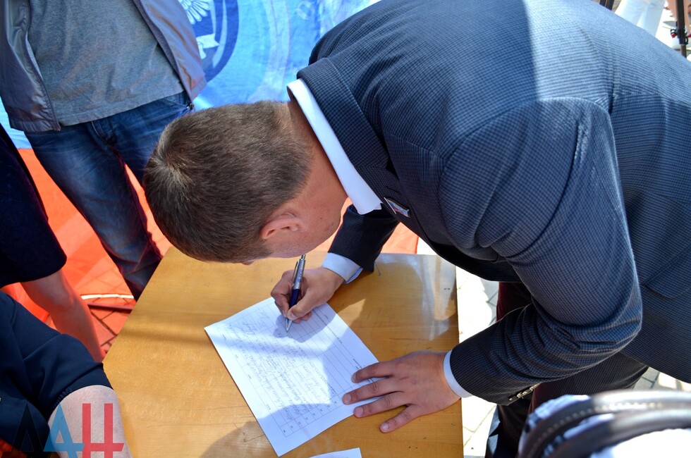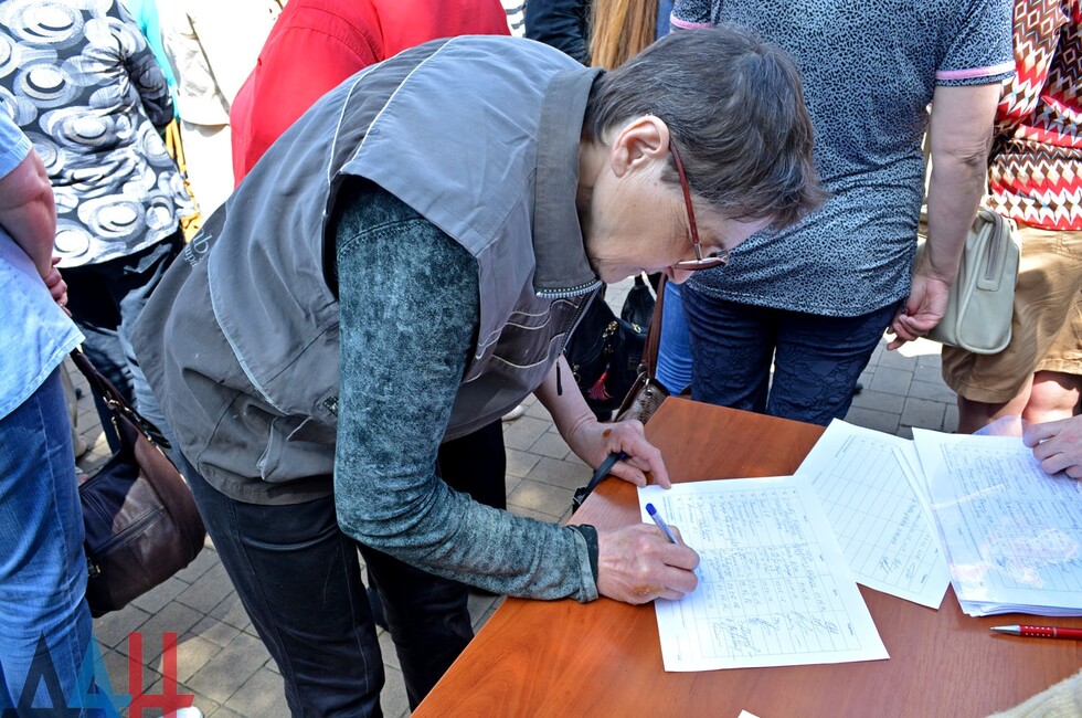 Акция по сбору подписей, поддержанная общественным движением "Донецкая Республика", началась накануне: специализированные палатки, где каждый желающий может оставить подпись под петицией, установлены на улицах в населенных пунктах по всей Республике. Как уточнили в пресс-службе ОД «ДР», 10 729 подписей собрано за 2 июня, данные за сегодняшний день будут получены позже.