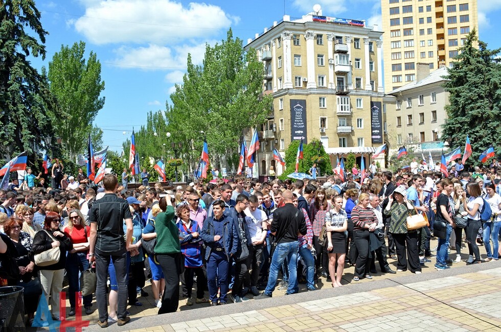 На митинг, состоявшийся сегодня вблизи Донецкого государственного академического музыкально-драматического театра в центральном Ворошиловском районе столицы, собрались сотни людей. В поддержку сбора подписей выступили, в частности, глава Ворошиловской районной администрации Владислав Латынцев и депутат Народного Совета, лидер общественной организации "Молодая Республика" Сергей Кондрыкинский.