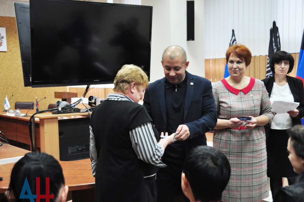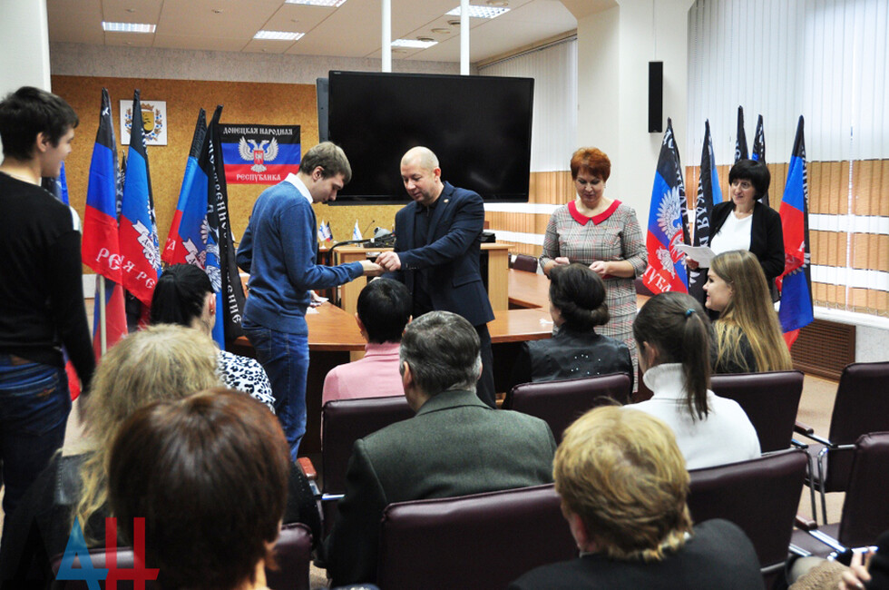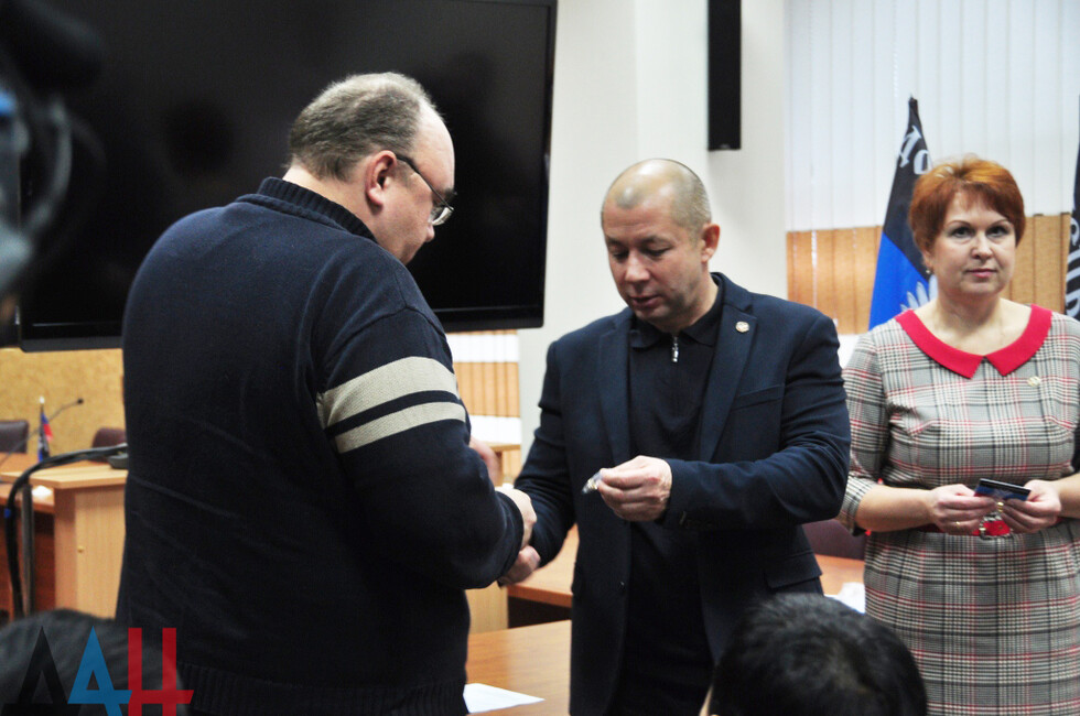 Вручал билеты глава администрации Ворошиловского района столицы ДНР, секретарь местного отделения ОД «ДР» Владислав Латынцев.