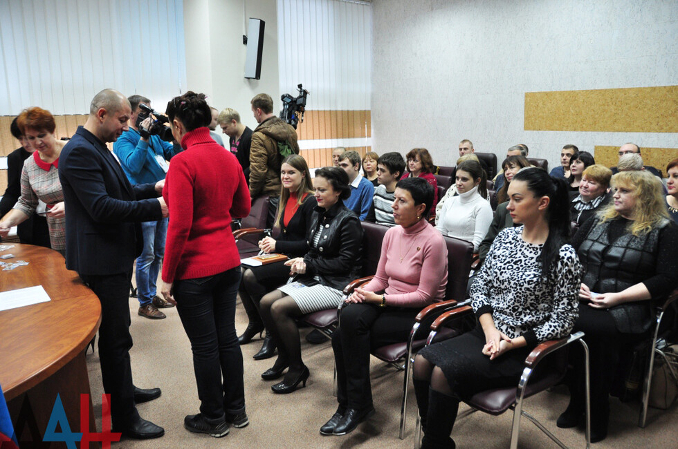 «Сегодня у нас торжественное мероприятие – в первичной ячейке государственного предприятия «Комтел» прибыло. Мы вручаем 24 билета членов общественного движения «Донецкая Республика», – сказал Латынцев, обращаясь к работникам учреждения. – Члены движения – это люди, которые работают и вносят свою лепту в строительство государства. Наша цель – решение конкретных проблем и улучшение качества наших граждан Республики».