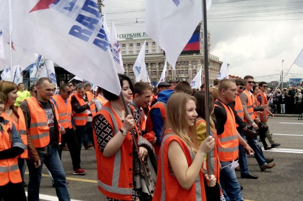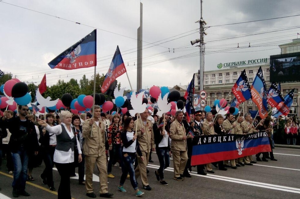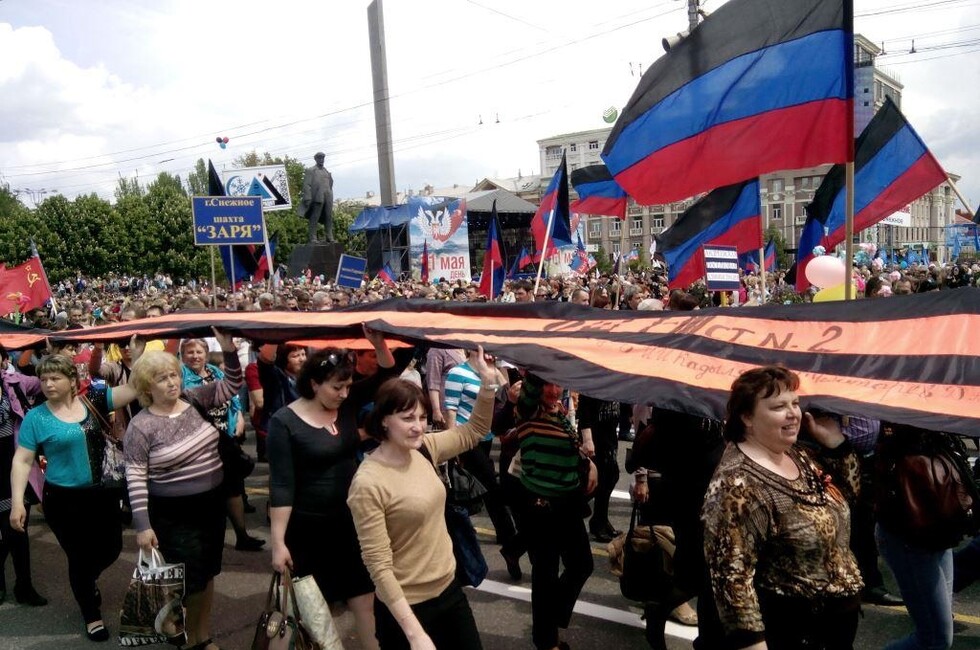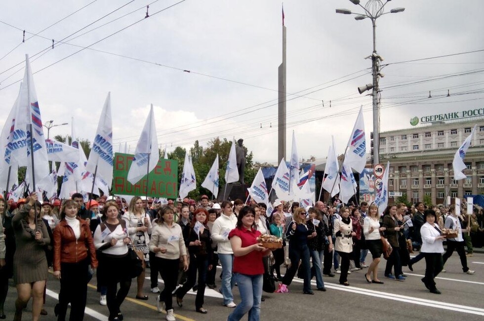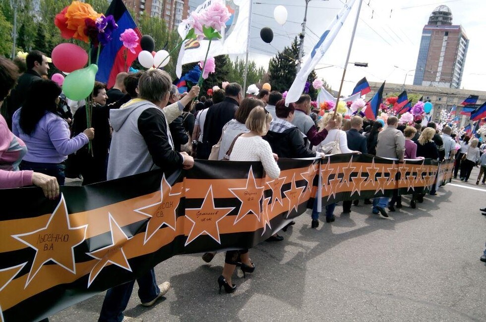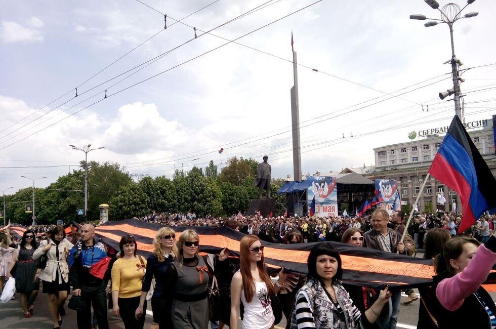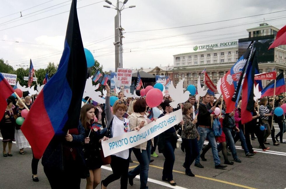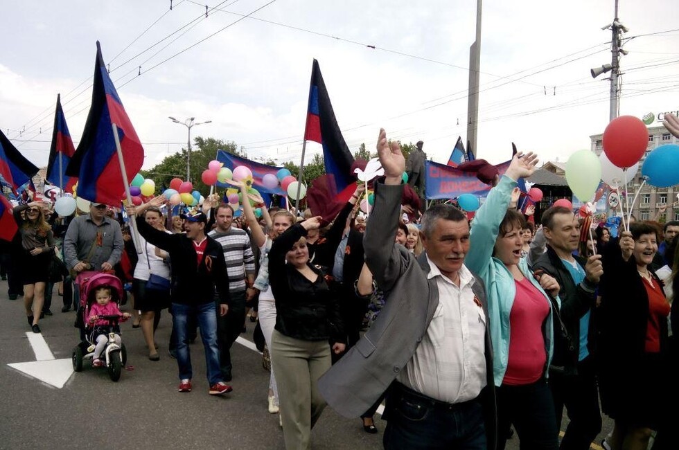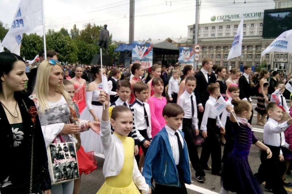 Донецк, 11 мая – ДАН. Несколько десятков тысяч человек принимают сегодня участие в праздничном шествии по случаю Дня Республики в Донецке, передает корр. ДАН с места событий.