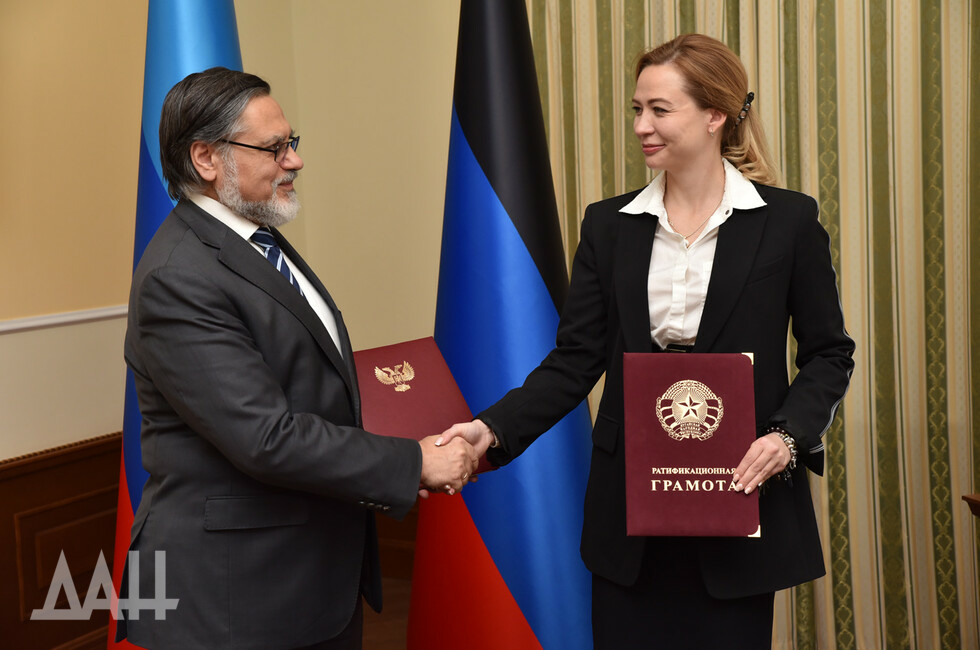 Донецк, 30 сен – корр.ДАН. Договор о создании единой таможенной территории (ЕТТ) и развитии экономической интеграции официально вступил в силу после обмена ратификационными грамотами. Как передает корр. ДАН с места события, в торжественной церемонии приняли участие Главы МИД ДНР и ЛНР Наталья Никонорова и Владислав Дейнего.