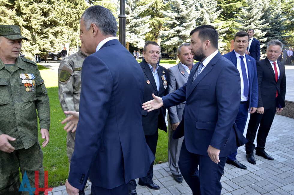 Встрече предшествовала торжественная церемония: руководителя ДНР около входа в здание приветствовал парадный расчет военнослужащих Южной Осетии.
