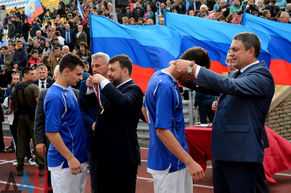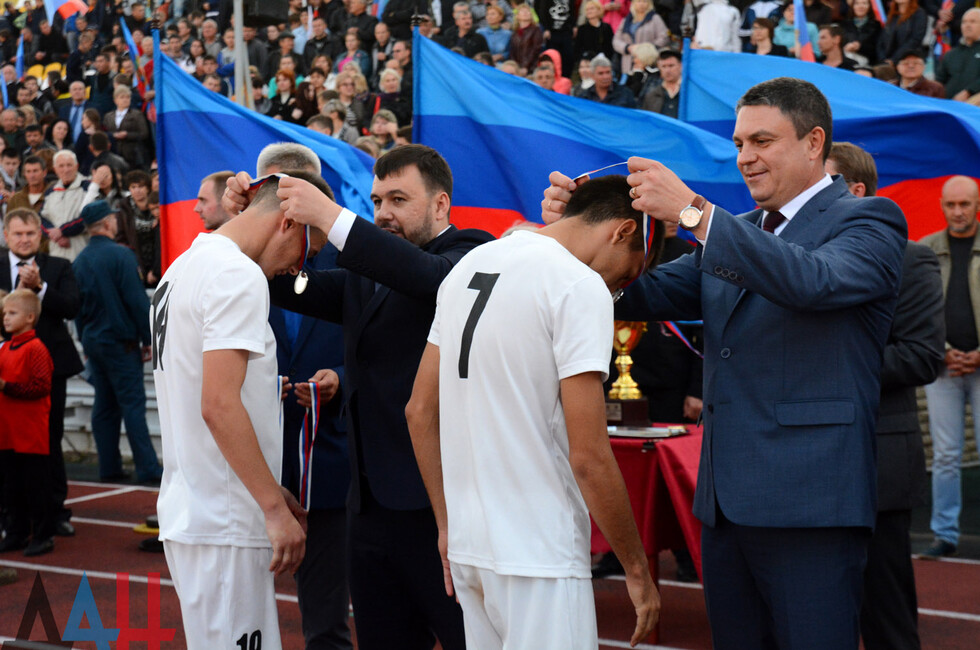 Добавим, что футбольный матч в Луганске посетила делегация из Донецкой Народной Республике во главе с врио Главы ДНР Денисом Пушилиным и и.о. Главы ЛНР Леонидом Пасечником. Руководители государств приняли участие в награждении победителей. *ха*мк