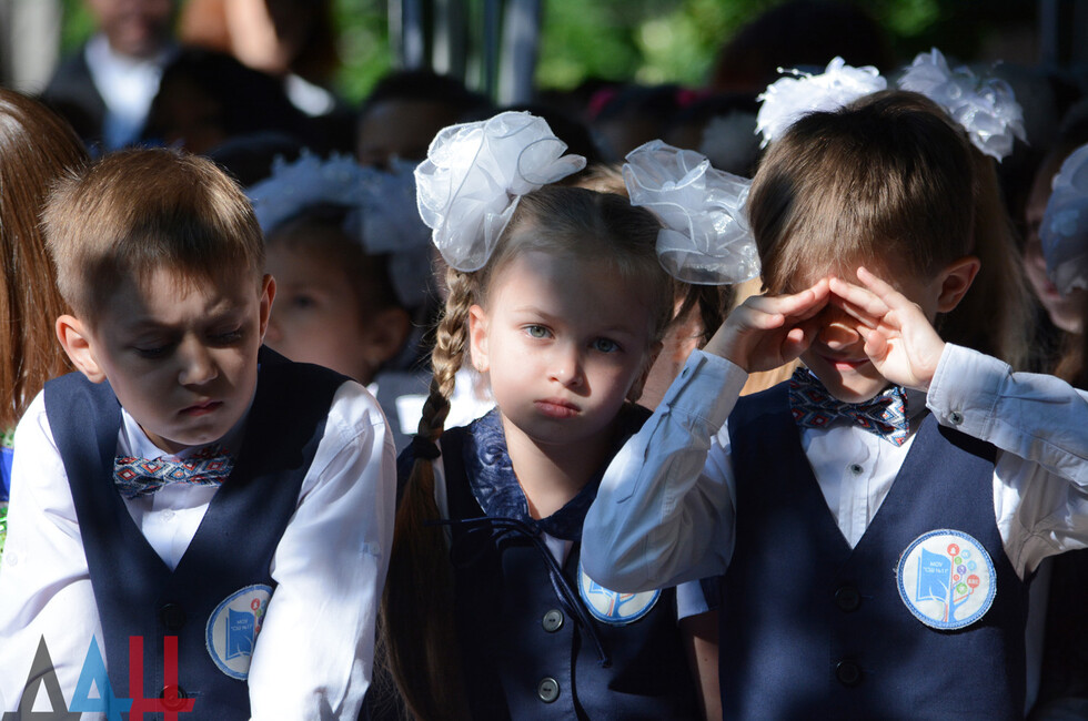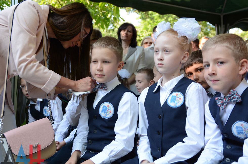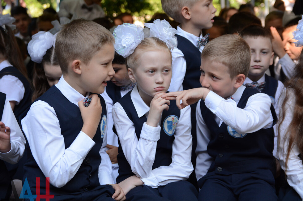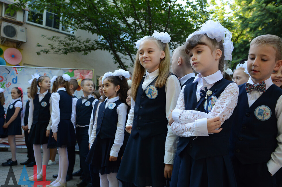 Школа находится в Ворошиловском районе Донецка. На линейке собралось порядка 300 человек. Праздник начался композицией «Мы маленькие дети, нам хочется гулять» в исполнении учеников младших классов. Продолжился концерт вокальными и хореографическими номерами. В завершение, под песню «Куда уходит детство», выпускники 11-х классов исполнили вальс со своими родителями, а первоклассники пожелали успехов во взрослой жизни своим старшим товарищам.