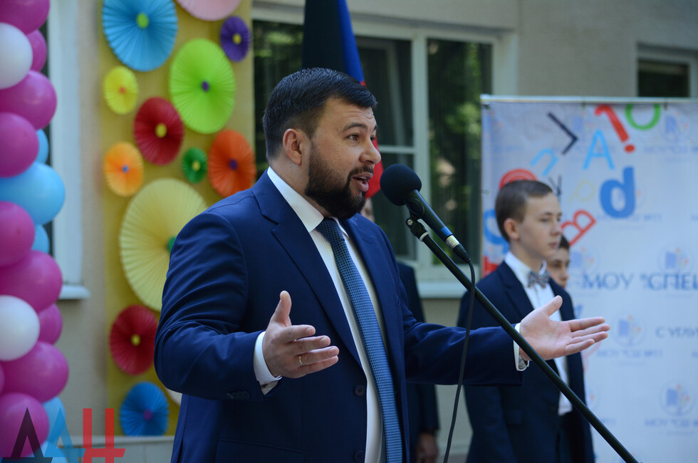 В торжествах принял участие Глава Республики Денис Пушилин. Он посетил два учебных заведения – в Донецке и Макеевке. Первая остановка – специализированная школа № 11 с углубленным изучением английского языка.