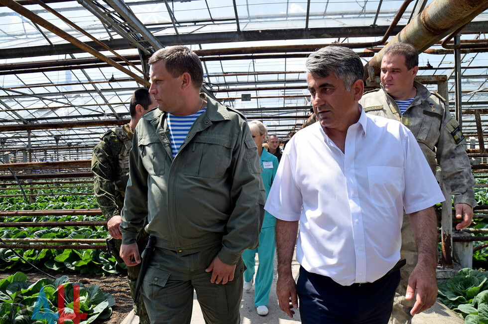 Зугрэс, 8 июн – корр. ДАН. Глава Донецкой Народной Республики Александр Захарченко посетил сегодня с рабочей поездкой город Зугрэс и проинспектировал работу ГП «Теплицы Донбасса». Вместе с руководителем государства на предприятии побывал заместитель председателя Совета министров, глава Миндоходов Александр Тимофеев.