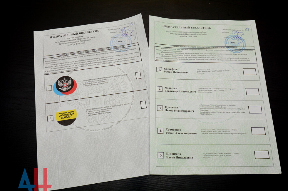 В Донецкой Народной Республике за пост руководителя государства будут бороться пять кандидатов – Денис Пушилин, Елена Шишкина, Роман Храменков, Владимир Медведев и Роман Евстифеев. На выборах в Народный Совет будут соперничать два общественных движения – «Донецкая Республика» и «Свободный Донбасс». *ха*мк*дя*нк