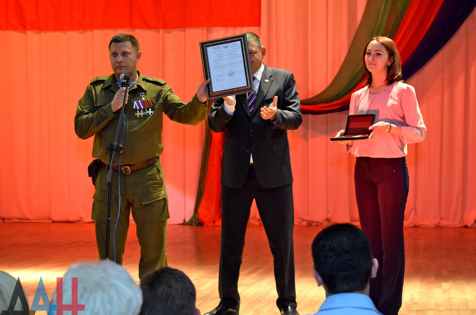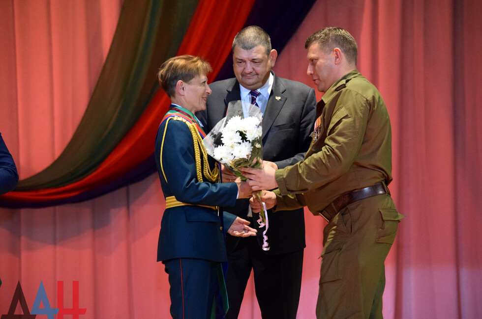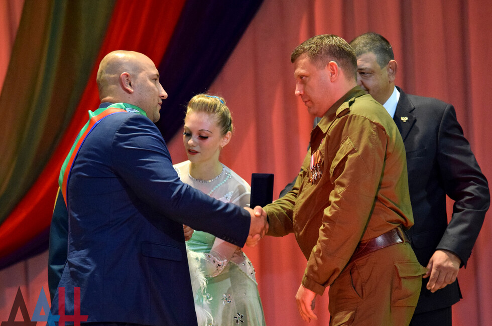 Далее началась церемония награждения. Руководитель страны вручил мэру города медаль «За трудовую доблесть», депутату парламента Александру Быкадорову и командиру реактивного артиллерийского дивизиона Ольге Качуре были присвоены звания «Почетный гражданин города», шестеро человек получили медаль им. Горлова (Петр Горлов, русский инженер-геолог, в честь которого Горловка получила свое название) III-й степени. Также за достижения в профессиональной сфере настольные медали им. Горлова получили коллективы Горловского театра танцев, парка культуры имени Горького и Центрального отделения ЦРБ ДНР.