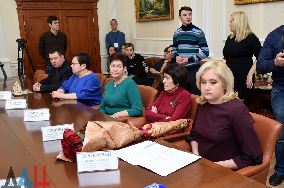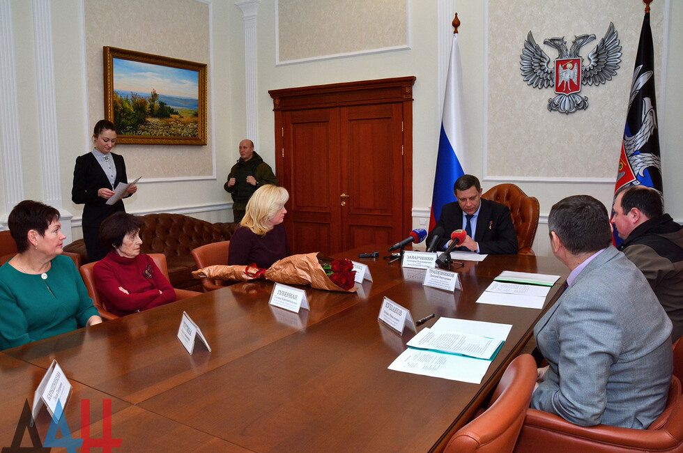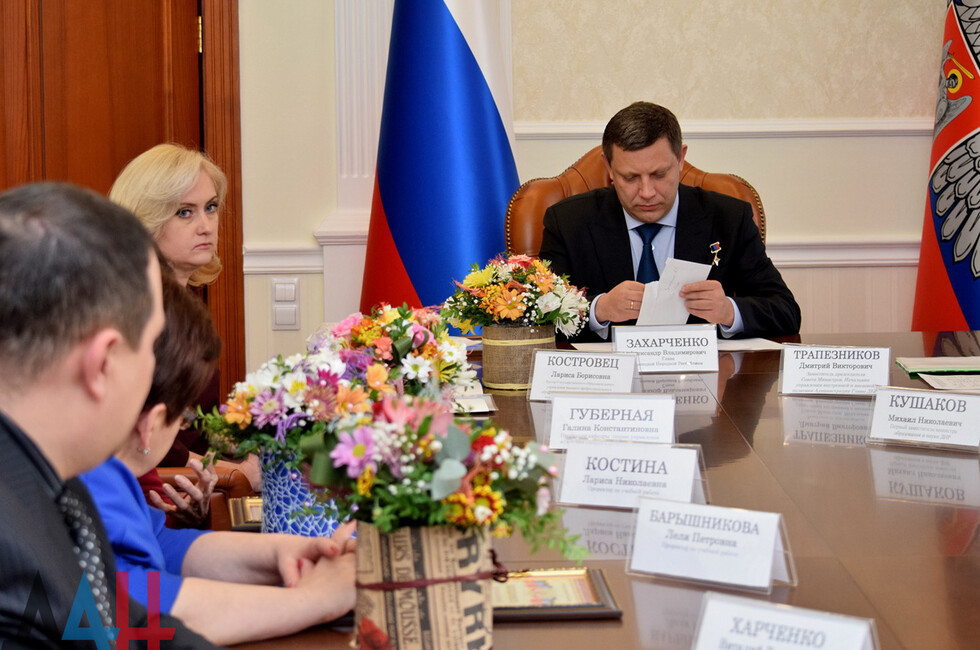 На встречу с лидером Республики пришли ректор академии Лариса Костровец, а также ее заместители - Леля Барышникова, Галина Губерная, Лариса Костина и Виталий Харченко. После приветственного слова Захарченко вручил им благодарности за многолетний добросовестный труд. Кроме того, он передал всему коллективу академии Почетную грамоту за вклад в формирование системы образования и науки Республики.