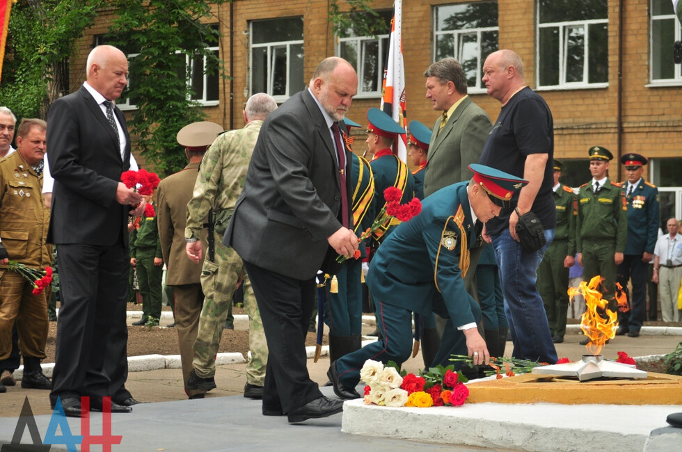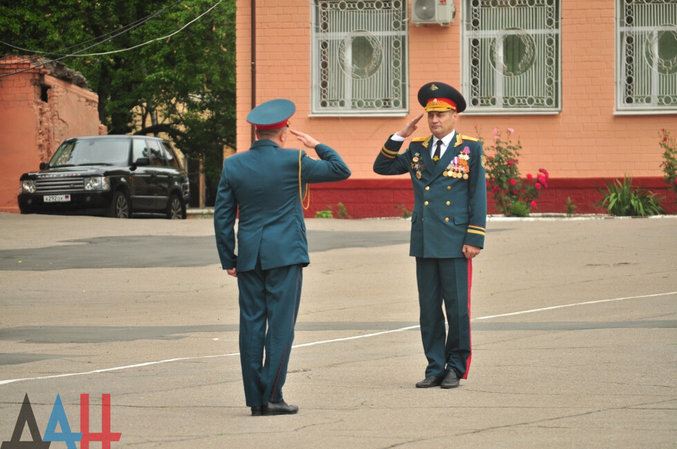 В качестве ответного жеста от лица всех выпускников училища Главе ДНР передали наградные командирские часы. После этого они вместе с курсантами под звуки военного оркестра прошли торжественным маршем по плацу. Завершением торжественной части стало возложение цветов к Вечному огню на Аллее памяти погибших защитников Донбасса (находится на территории ДонВОКУ).
