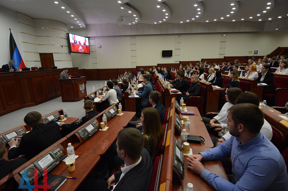Донецк, 7 мая – корр. ДАН. Первое заседание Молодежного Парламента ДНР (МП) началось сегодня в донецком здании Дома Правительства. Об этом передает корр. ДАН с места события.