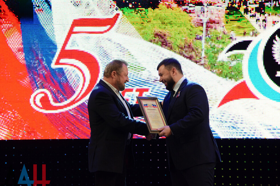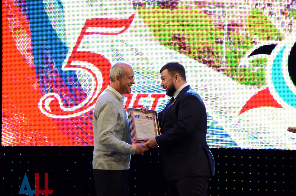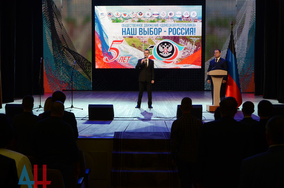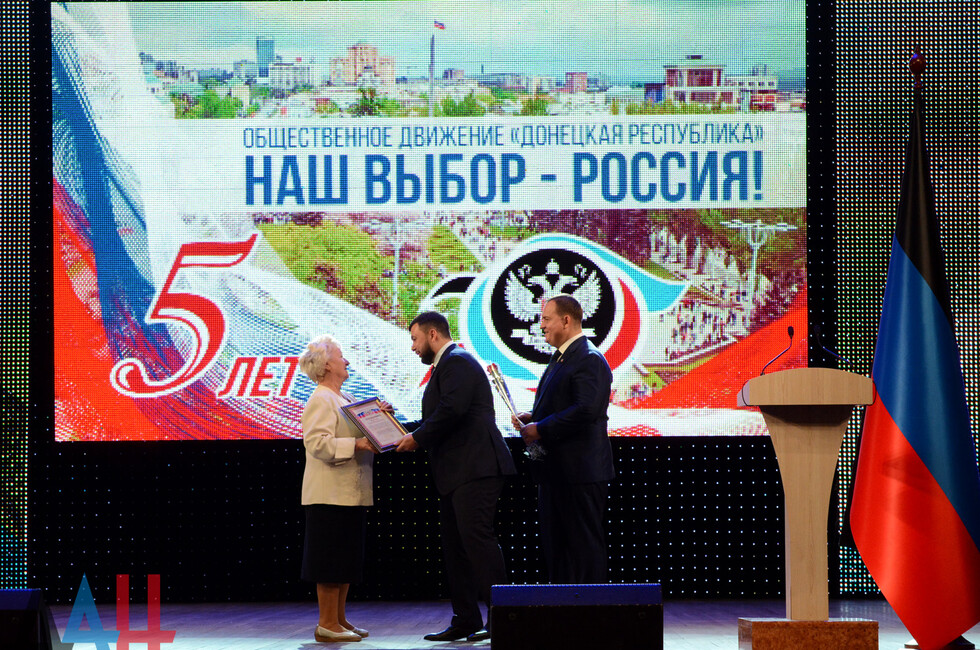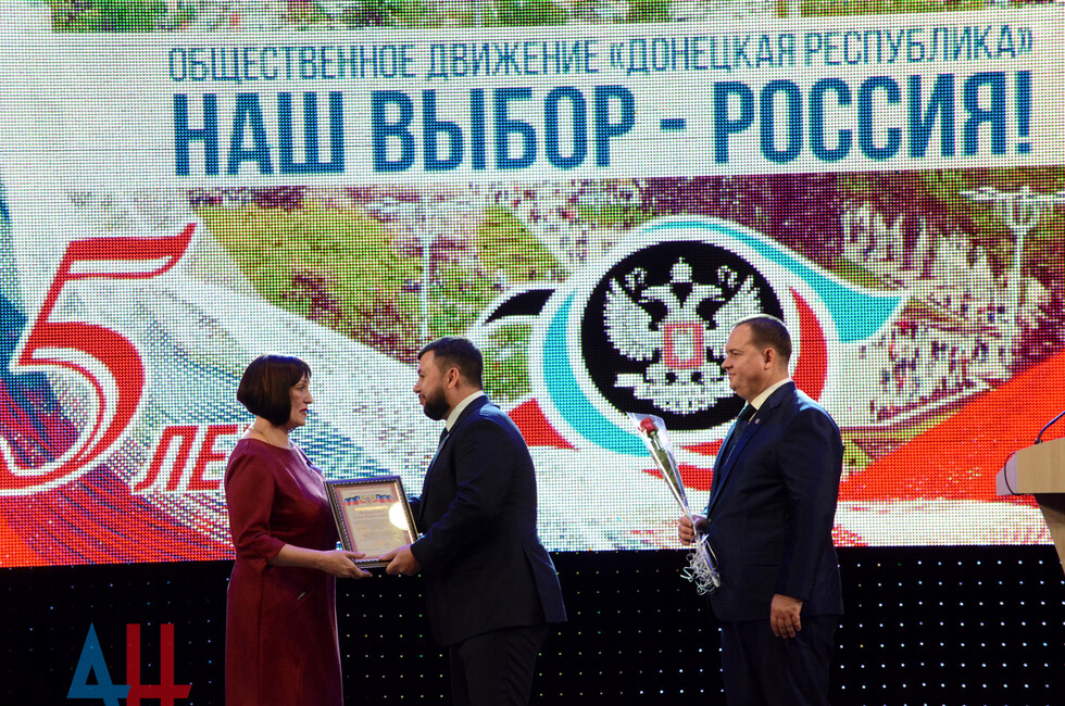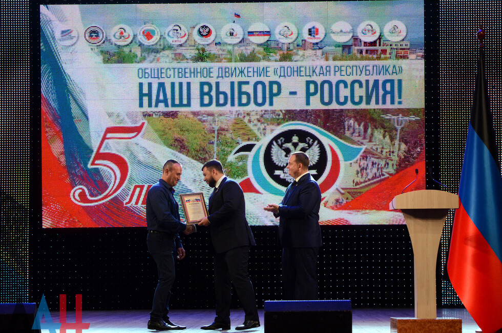 Донецк, 23 окт – корр. ДАН. Глава ДНР Денис Пушилин вручил благодарности активистам общественного движения «Донецкая Республика» на внеочередном съезде, посвященном пятилетию движения. Мероприятие прошло сегодня в донецком Центре славянской культуры.