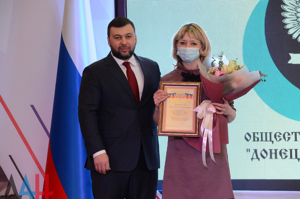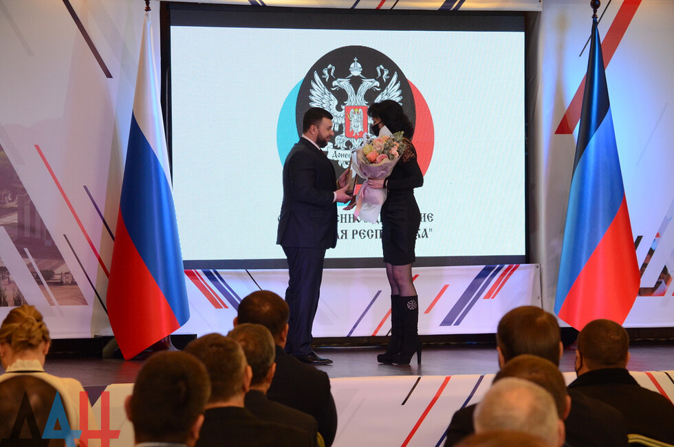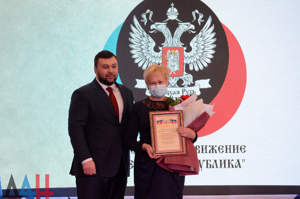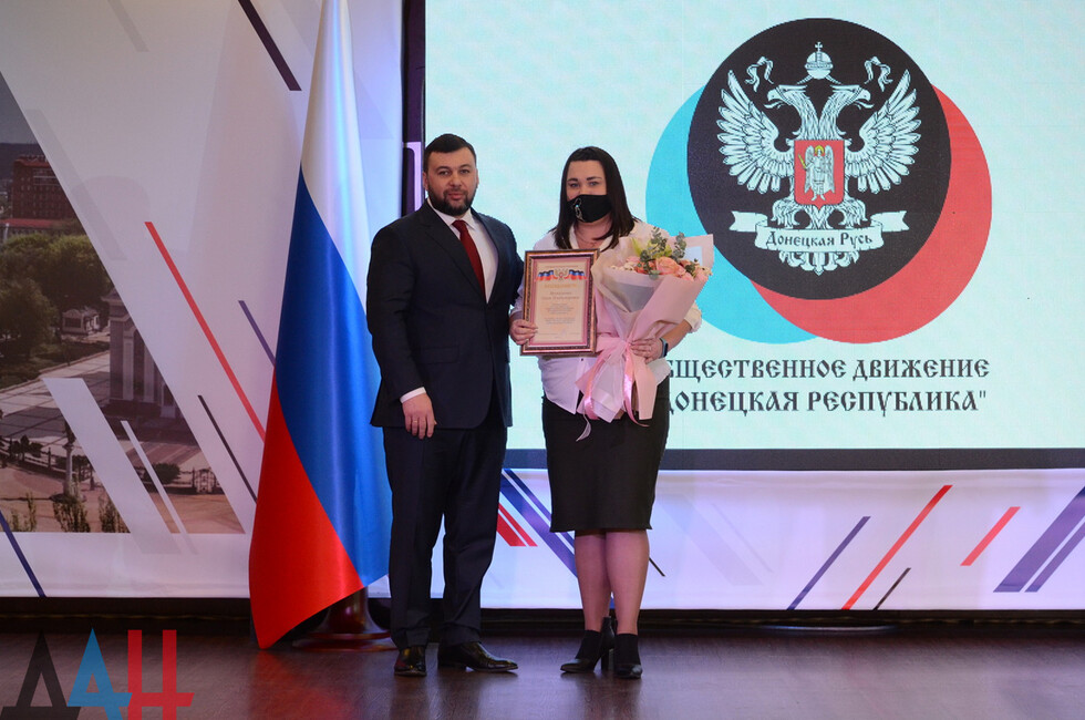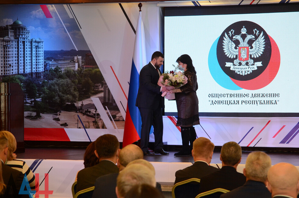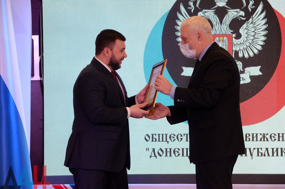 Затем он вручил руководителю Центрального исполкома ОД «ДР» Алексею Муратову знак отличия «За заслуги перед Республикой» 3 -йстепени. Еще 11 деятелей движения получили благодарности Главы ДНР.
