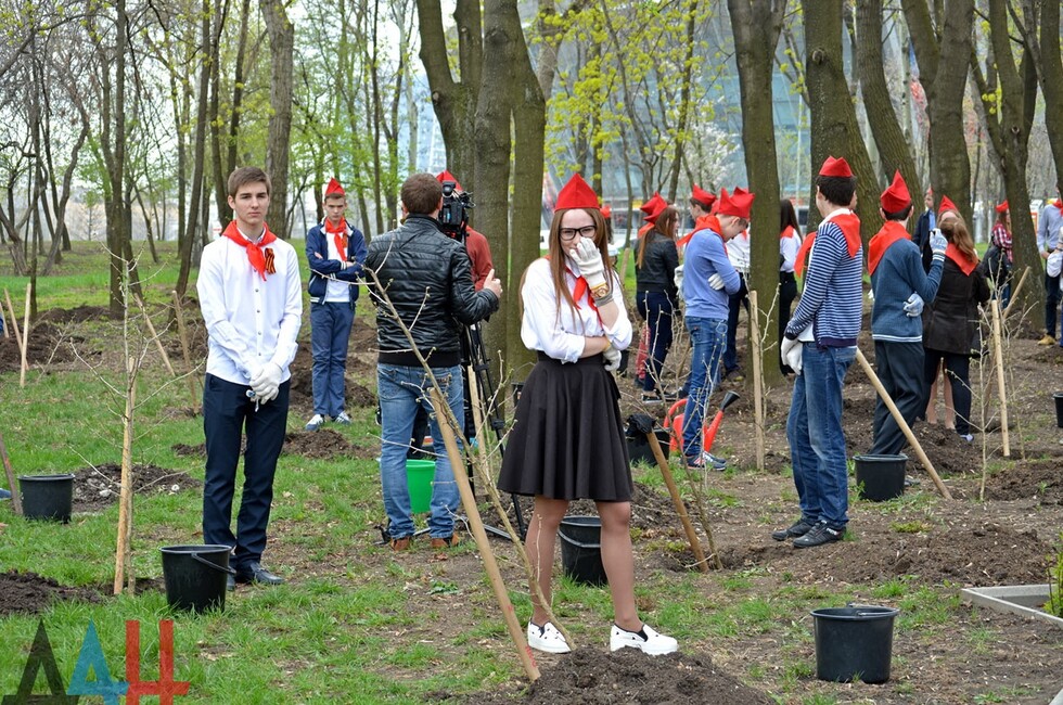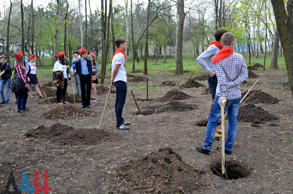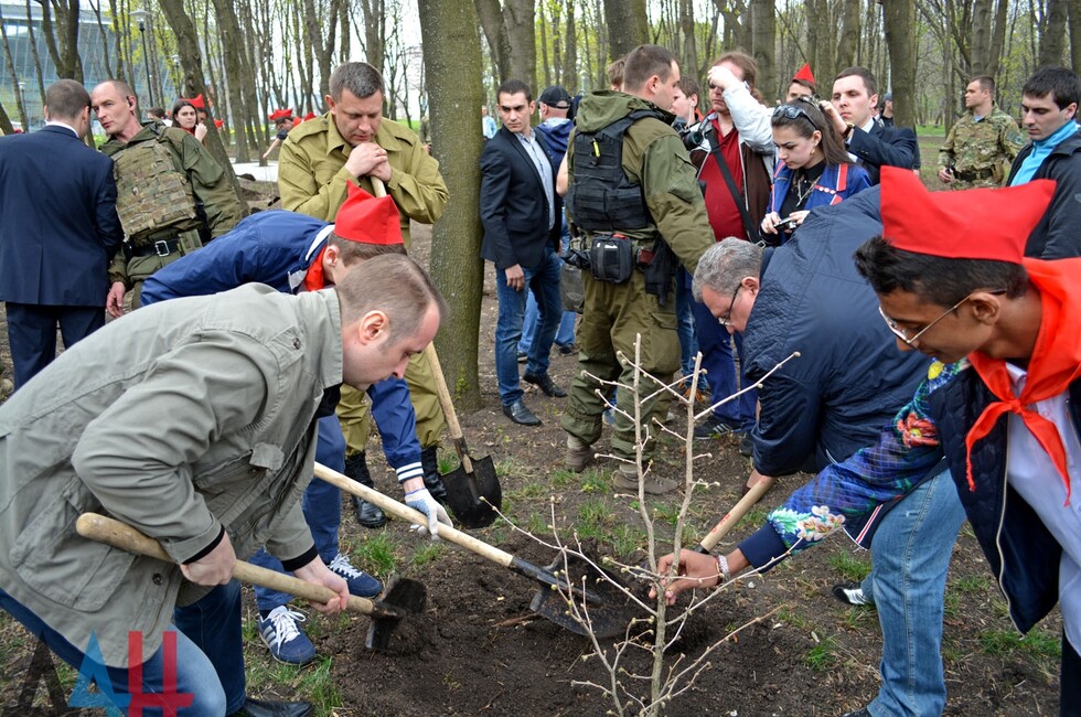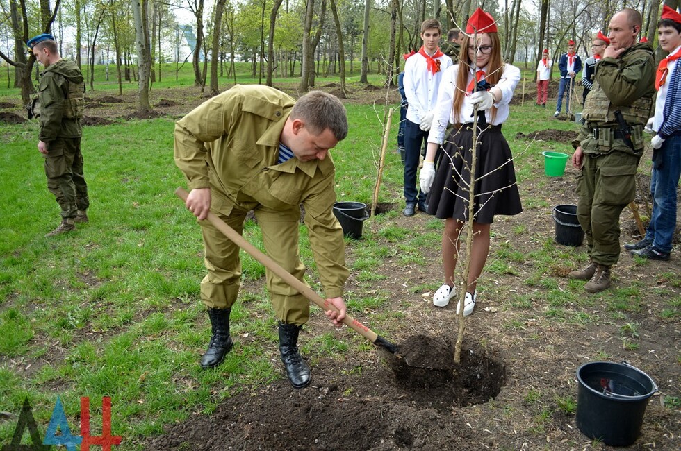 Память бойцов, погибших за Донбасс, собравшиеся почтили минутой молчания. После этого глава республики вместе с другими участниками высадили вдоль аллеи 100 деревьев.