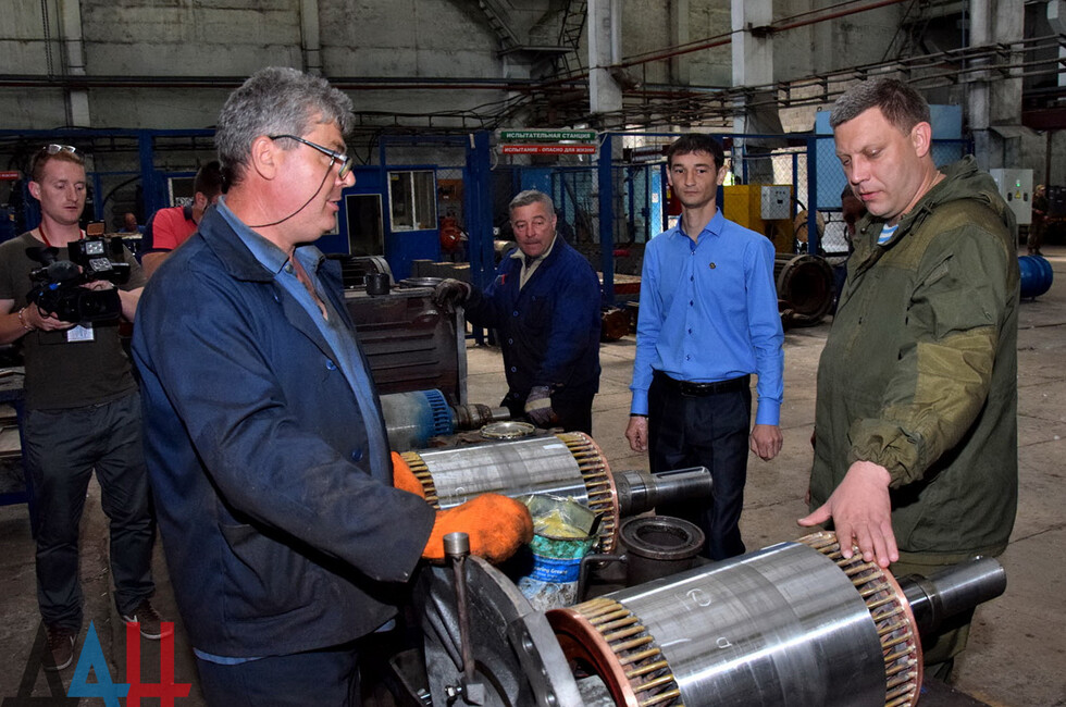 Донецк, 26 мая – корр. ДАН. Глава ДНР Александр Захарченко сегодня днем посетил одно из старейших предприятий региона – Донецкий электротехнический завод, где 1 марта этого года было введено внешнее управление. Лидер Республики побывал в цехах, а на встрече с трудовым коллективом обсудил перспективы развития производственных мощностей.