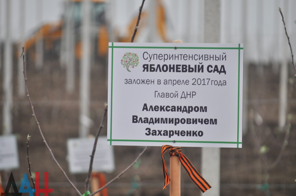 Ранее сообщалось, что Глава ДНР Александр Захарченко в ходе рабочей поездки в Зугрес заявил о планах развить садоводство в Республике. По его словам, упор будет сделан на яблоки, вишни и персики. Также сообщалось, что в селе Кузнецово-Михайловка Тельмановского района, по распоряжению руководителя государства, началась высадка яблонь: 5000 деревьев сорта Фуджи и 2000 яблонь сорта Либерти. Весенняя высадка станет первым этапом, он должен быть завершен к 20 апреля. Второй запланирован на осень, когда высадят еще четыре сорта плодовых. Общее количество саженцев достигнет 32 тысяч. *сж*ъъ