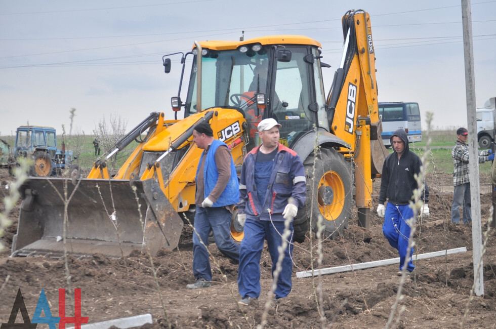 Захарченко, Антонов и Трапезников вместе посадили три саженца яблони. У деревьев были установлены памятные таблички. В общей сложности сегодня к работам по закладке нового сада было привлечено около 60 человек. Среди них как местные жители, так и студенты биологического факультета Донецкого национального университета.