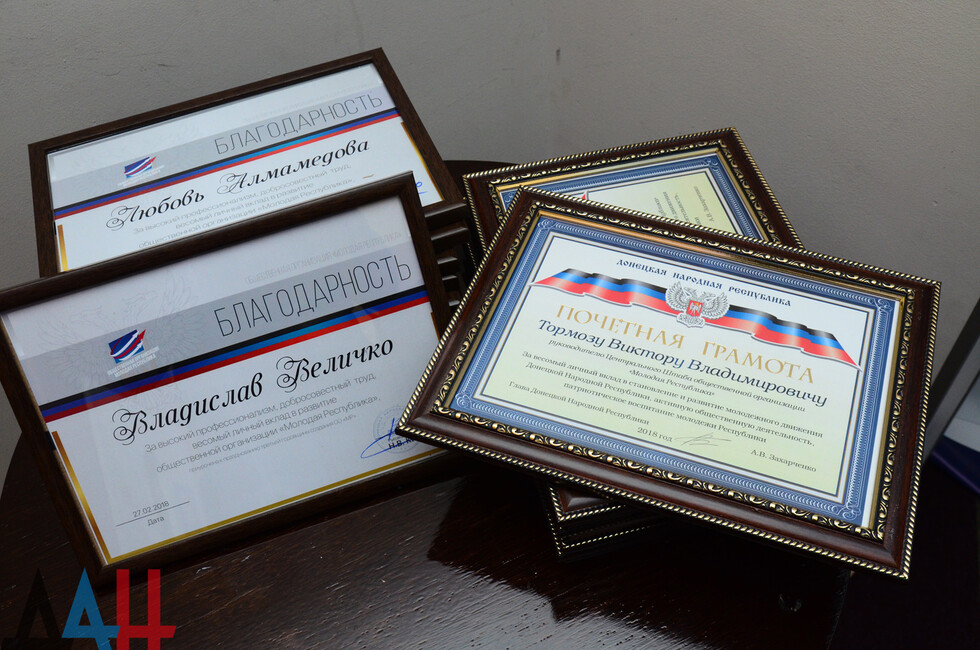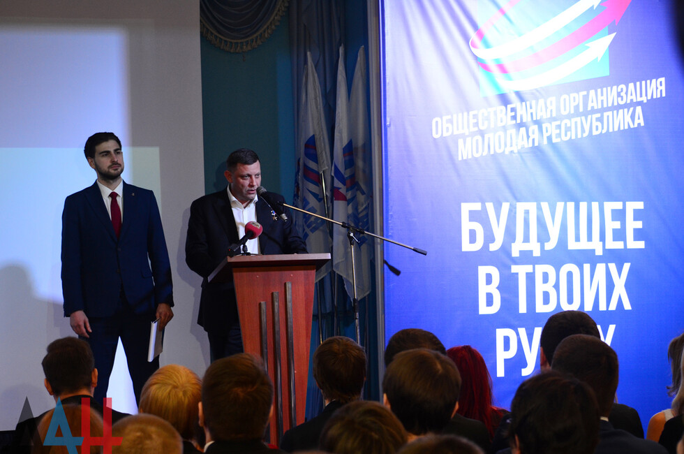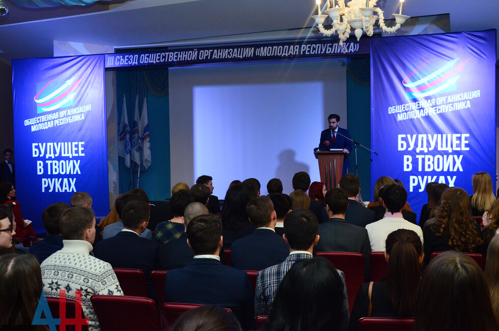 Донецк, 27 фев – корр. ДАН. Активисты общественной организации «Молодая Республика» отметили сегодня на съезде в Донецке третью годовщину ее создания. По случаю праздника Глава ДНР Александр Захарченко вручил награды сотрудникам центрального штаба организации.