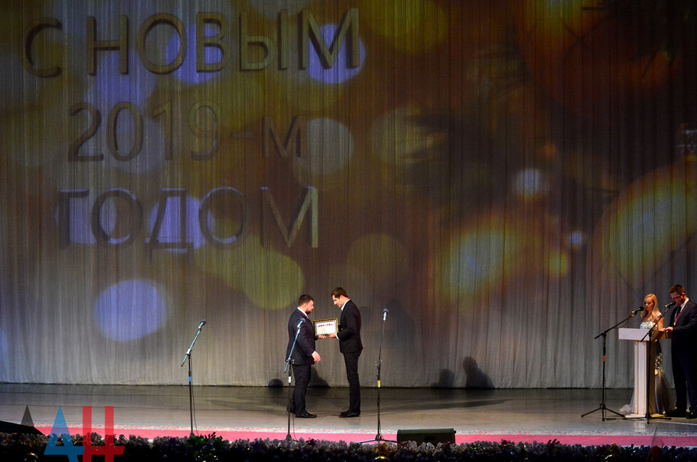 Донецк, 28 дек – ДАН. Сотрудники министерств, ведомств и администраций городов и районов были награждены за профессионализм и вклад в развитие государства. Церемония прошла сегодня в здании Донецкого государственного академического театра оперы и балета им. Соловьяненко, награды вручил Глава ДНР Денис Пушилин.