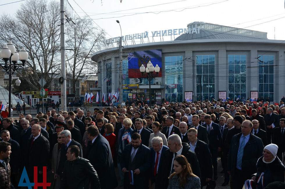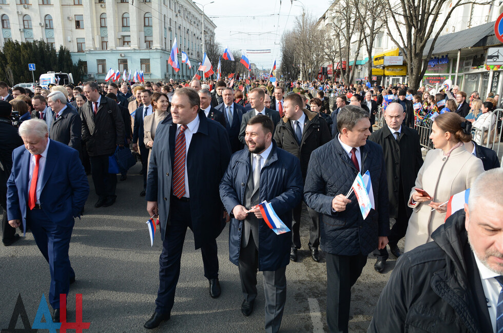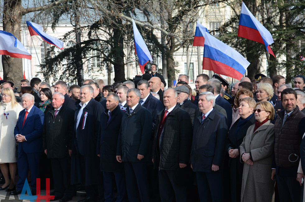 Митинг состоялся у здания Государственного Совета Республики Крым и объединил порядка 5 тысяч человек. В числе участников были Главы ДНР и Крыма Денис Пушилин и Сергей Аксенов, председатель Госдумы Вячеслав Володин, Глава ЛНР Леонид Пасечник, главы всех четырех думских фракций, а также другие политики и общественные деятели России и европейских стран.