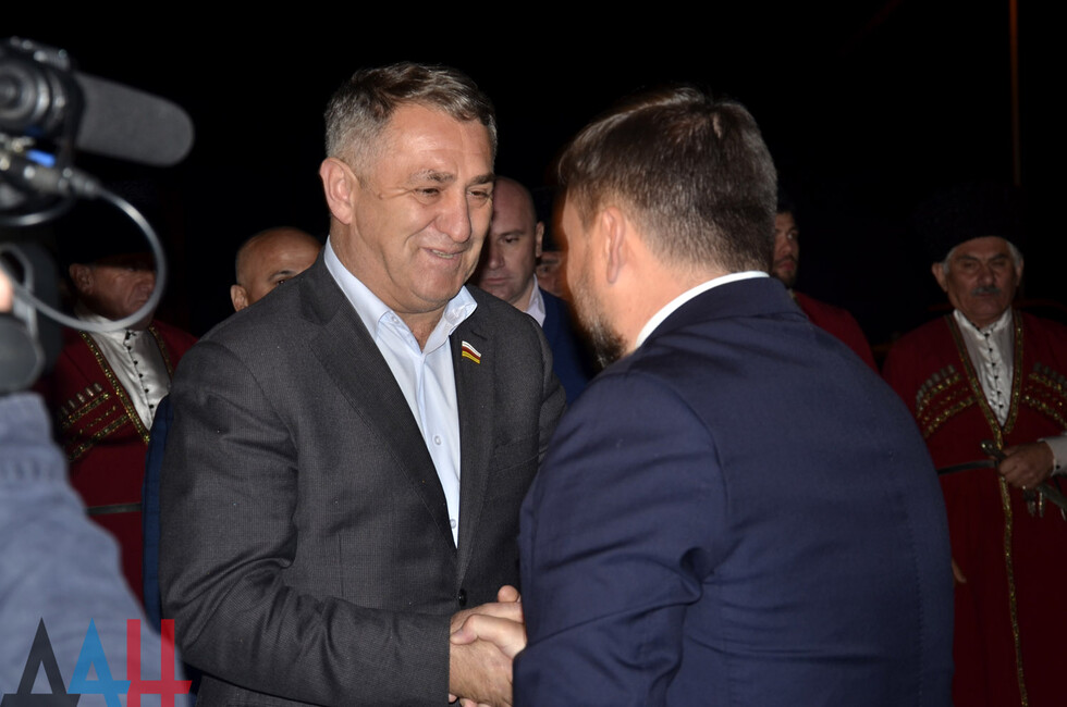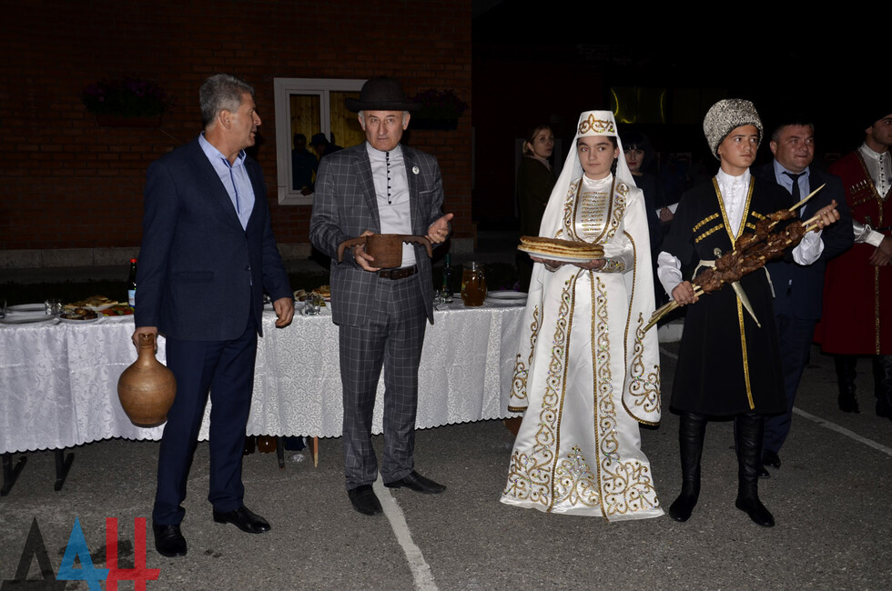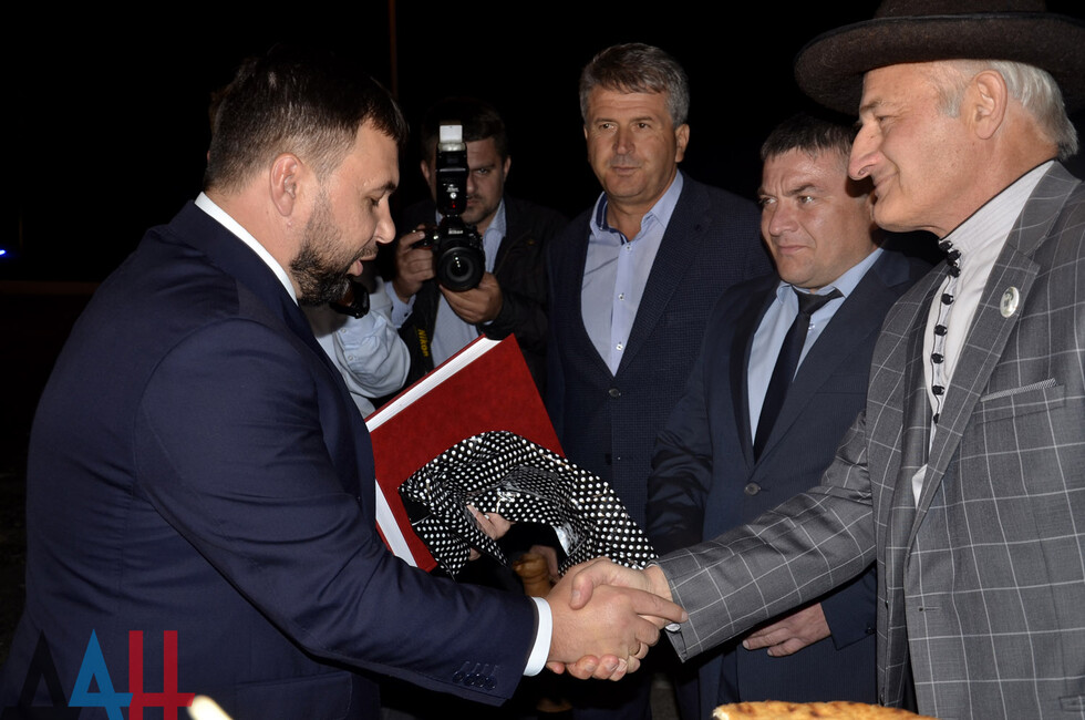 На границе РЮО лидера Донецкой Народной Республики ожидал торжественный прием. Его встретили по старой местной традиции: угостили пирогами и шашлыком, а казачий хор исполнил осетинские народные песни. Пушилину также вручили подарок - энциклопедию по истории Осетии.