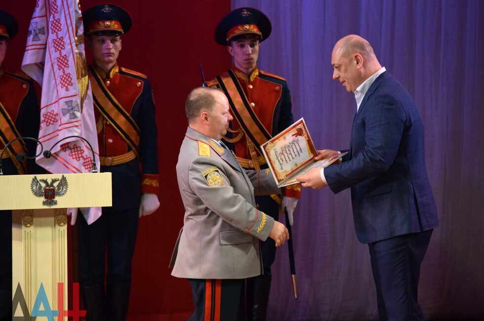 Кроме того, Кононов вручил военнослужащим ДНР награды и грамоты. Благодарностями Минобороны были отмечены главы ряда министерств и ведомств Республики. Завершилось мероприятие праздничным концертом.