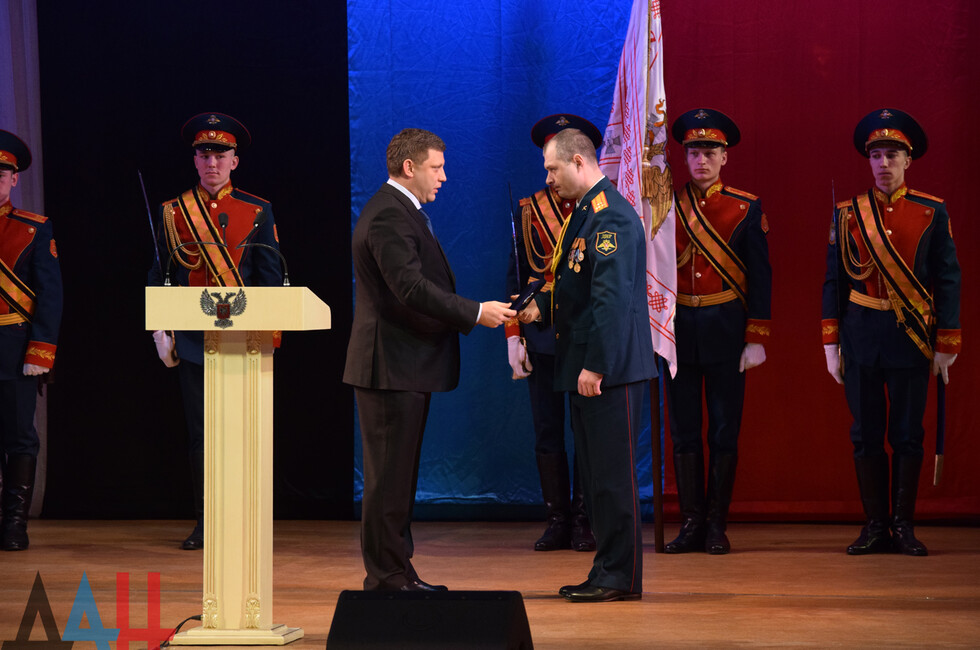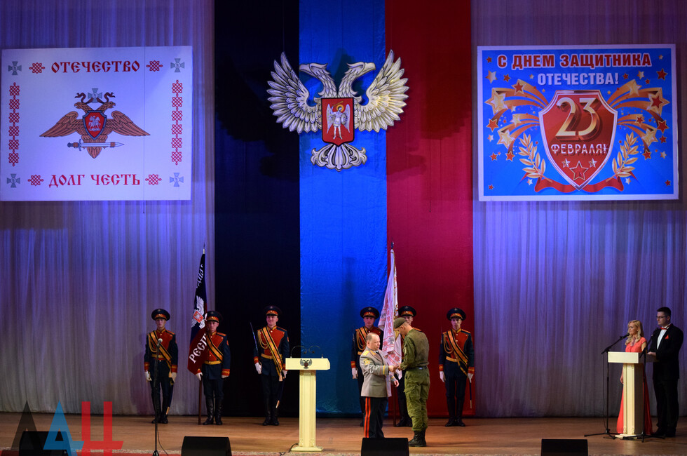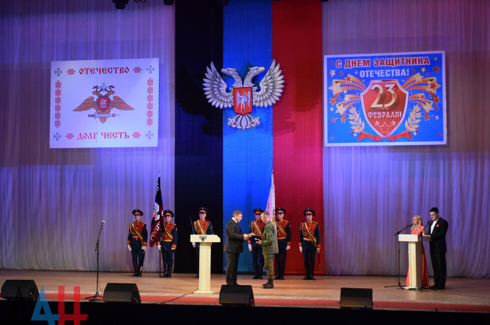 Донецк, 22 фев – корр. ДАН. Торжественное мероприятие, посвященное Дню защитника Отечества, прошло сегодня в Донецком государственном академическом театре оперы и балета имени А.Б. Соловьяненко. На сцене театра состоялось награждение лучших представителей вооруженных сил Донецкой и Луганской Народных Республик.