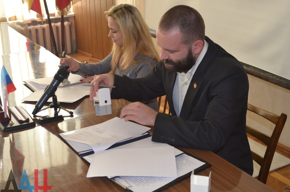 Договор о сотрудничестве был подписан в здании горадминистрации Первомайска. После торжественной церемонии мэры обменялись символическими подарками. Делегаты из ДНР привезли с собой каравай, а взамен получили картину.